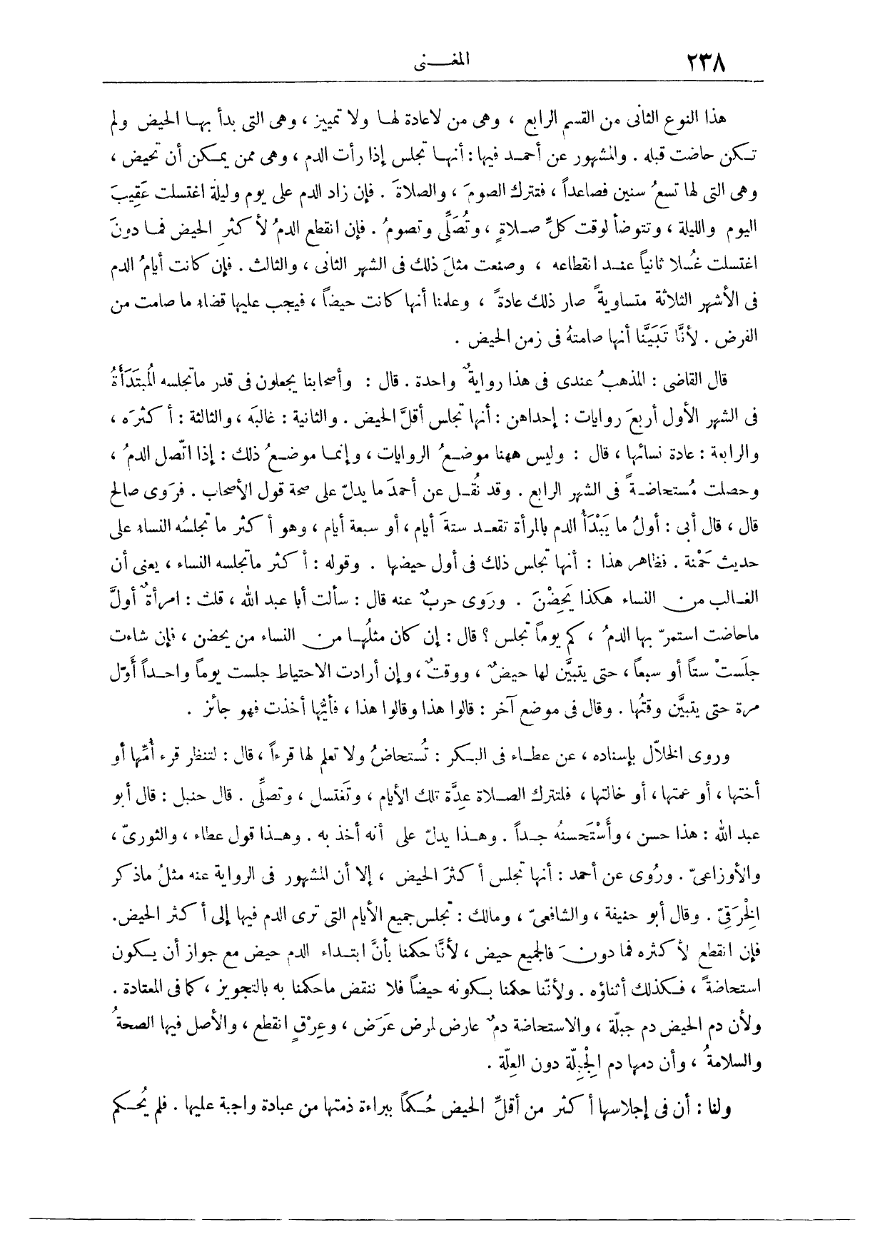 وَرُوِيَ عَنْ أَحْمَدَ: أَنَّهَا تَجْلِسُ أَكْثَرَ الْحَيْضِ. إلَّا أَنَّ الْمَشْهُورَ فِي الرِّوَايَةِ عَنْهُ مِثْلُ مَا ذَكَرَ الْخِرَقِيِّ؛ وَقَالَ مَالِكٌ وَأَبُو حَنِيفَةَ، وَالشَّافِعِيُّ: تَجْلِسُ جَمِيعَ الْأَيَّامِ الَّتِي تَرَى الدَّمَ فِيهَا إلَى أَكْثَرِ الْحَيْضِ، فَإِنْ انْقَطَعَ لِأَكْثَرِهِ فَمَا دُونَ، فَالْجَمِيعُ حَيْضٌ؛ لِأَنَّا حَكَمْنَا بِأَنَّ ابْتِدَاءَ الدَّمِ حَيْضٌ مَعَ جَوَازِ أَنْ يَكُونَ اسْتِحَاضَةً، فَكَذَلِكَ أَثْنَاؤُهُ؛ وَلِأَنَّنَا حَكَمْنَا بِكَوْنِهِ حَيْضًا، فَلَا نَنْقُضُ مَا حَكَمْنَا بِهِ بِالتَّجْوِيزِ، كَمَا فِي الْمُعْتَادَةِ؛ وَلِأَنَّ دَمَ الْحَيْضِ دَمُ جِبِلَّةٍ، وَالِاسْتِحَاضَةُ دَمٌ عَارِضٌ لِمَرَضٍ عَرَضَ؛ وَعِرْقٍ انْقَطَعَ، وَالْأَصْلُ فِيهَا الصِّحَّةُ وَالسَّلَامَةُ، وَأَنَّ دَمَهَا دَمُ الْجِبِلَّةِ دُونَ الْعِلَّةِ.