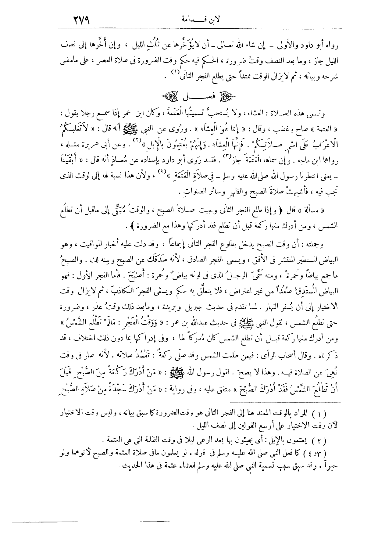 (٥٢٨) فَصْلٌ: وَتُسَمَّى هَذِهِ الصَّلَاةُ الْعِشَاءَ، وَلَا يُسْتَحَبُّ تَسْمِيَتُهَا الْعَتَمَةَ، وَكَانَ ابْنُ عُمَرَ إذَا سَمِعَ رَجُلًا يَقُولُ: الْعَتَمَةُ. صَاحَ وَغَضِبَ، وَقَالَ: إنَّمَا هُوَ الْعِشَاءُ