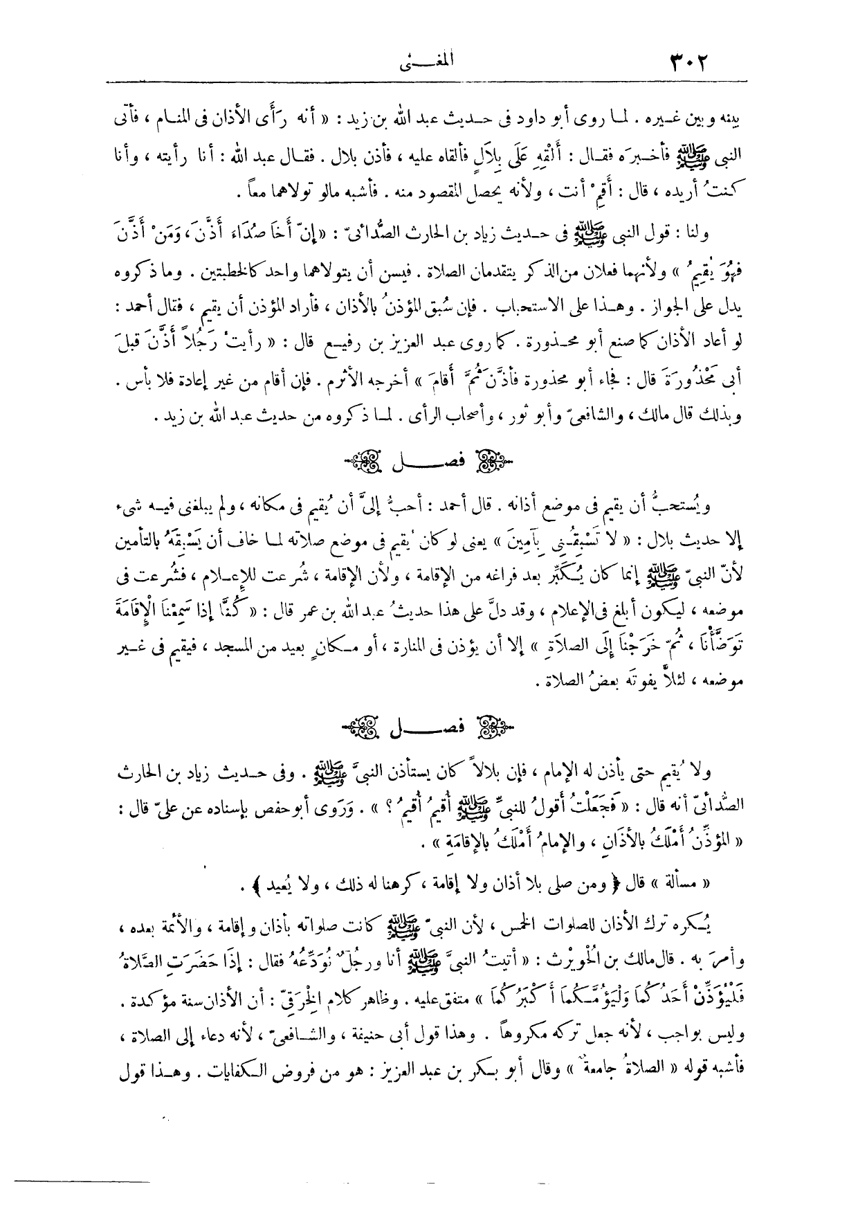 (٥٧٥) فَصْلٌ: وَلَا يُقِيمُ حَتَّى يَأْذَنَ لَهُ الْإِمَامُ، فَإِنَّ بِلَالًا كَانَ يَسْتَأْذِنُ النَّبِيَّ - صَلَّى اللَّهُ عَلَيْهِ وَسَلَّمَ - وَفِي حَدِيثِ زِيَادِ بْنِ الْحَارِثِ الصُّدَائِيِّ، أَنَّهُ قَالَ: فَجَعَلْتُ أَقُولُ لِلنَّبِيِّ - صَلَّى اللَّهُ عَلَيْهِ وَسَلَّمَ - أُقِيمُ أُقِيمُ؟ . وَرَوَى أَبُو حَفْصٍ، بِإِسْنَادِهِ عَنْ عَلِيٍّ قَالَ: الْمُؤَذِّنُ أَمْلَكُ بِالْأَذَانِ، وَالْإِمَامُ أَمْلَكُ بِالْإِقَامَةِ.