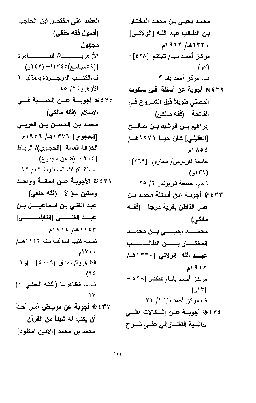 529( الأجوبة المفيدة لأرباب العلم الكملة في نقد اعتراضات الطلبة الجهلة (نوازل)