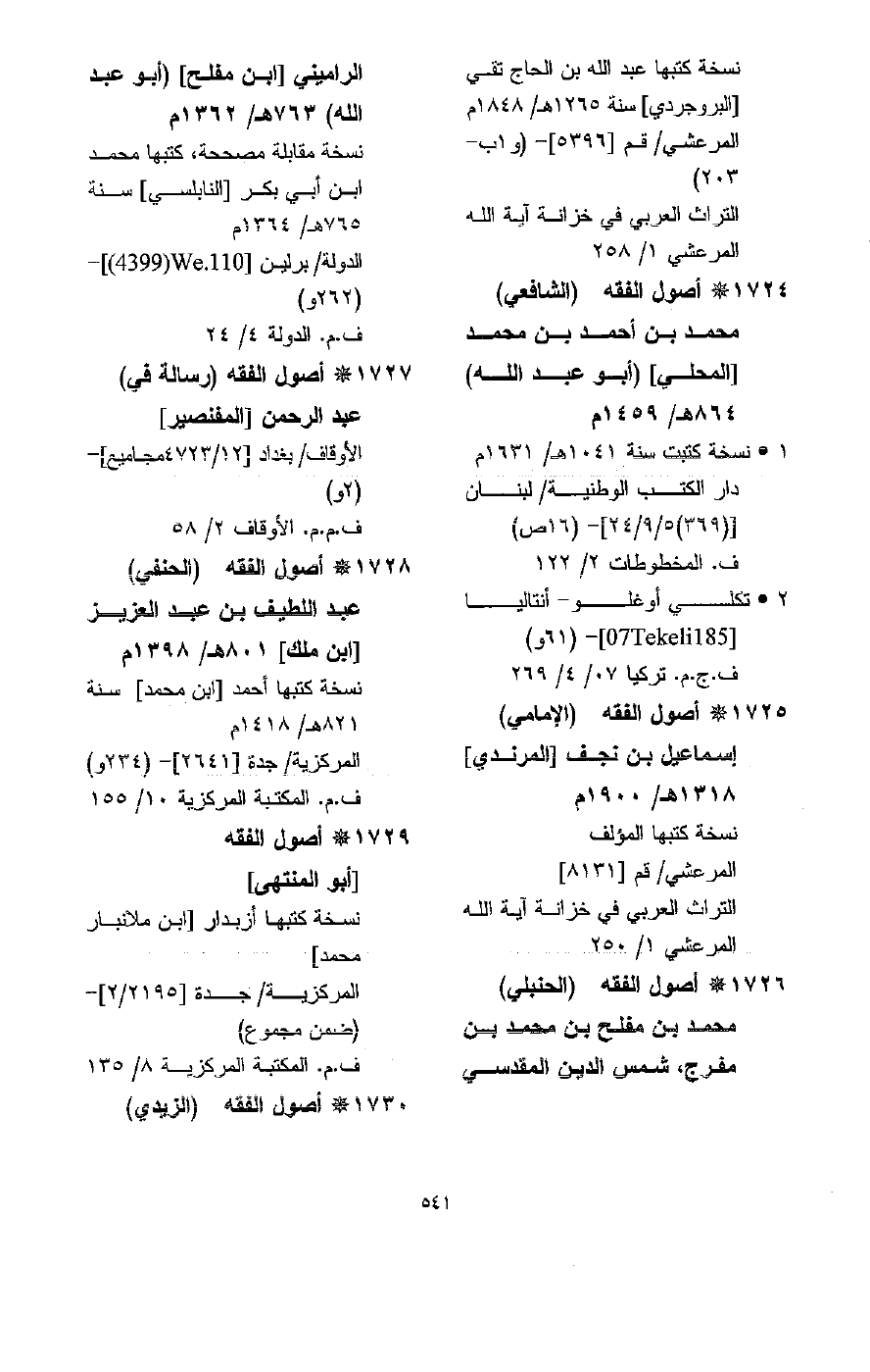 (2) على المذاهب الفقهية الأربعة. وقد تكررت نسخة دار الكتب بالقاهرة في كل قسم من أقسام الفقه من فهرسها.