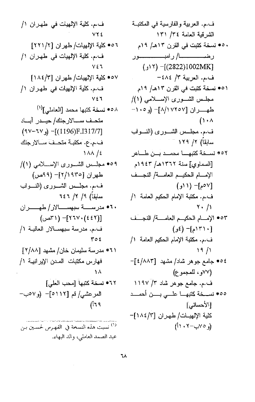 …ف. م. المكتبة المركزية بجامعة طهران 16/ 670