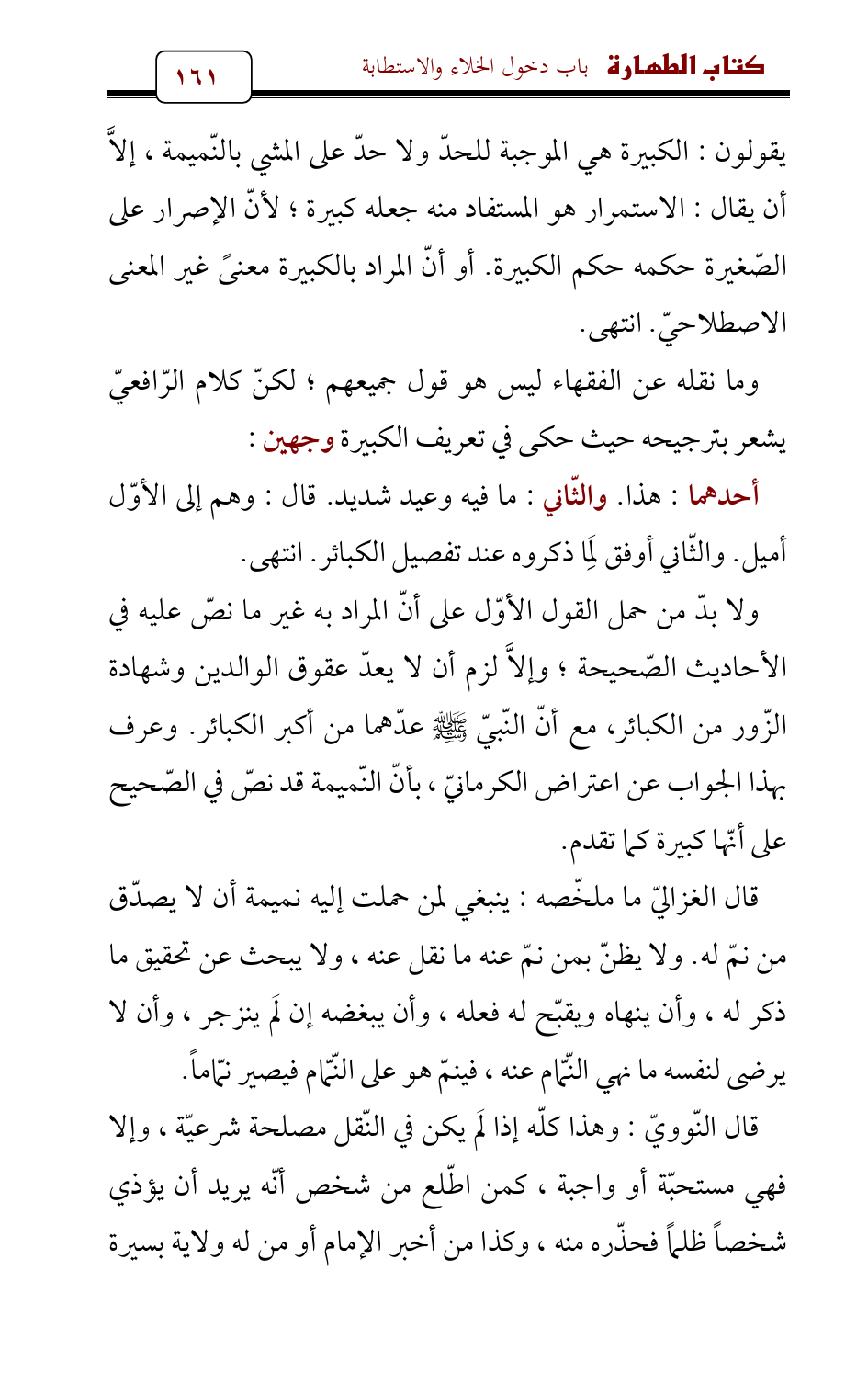 وما نقله عن الفقهاء ليس هو قول جميعهم؛ لكنّ كلام الرّافعيّ يشعر بترجيحه حيث حكى في تعريف الكبيرة وجهين: