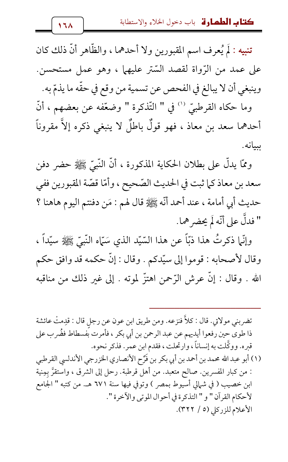 (¬1) أبو عبد الله محمد بن أحمد بن أبي بكر بن فَرح الأنصاري الخزرجي الأندلسي القرطبي: من كبار المفسرين. صالح متعبد. من أهل قرطبة. رحل إلى الشرق , واستقرَّ بِمِنية ابن خصيب (في شمالي أسيوط بمصر) وتوفي فيها سنة 671 هـ. من كتبه " الجامع لأحكام القرآن " و " التذكرة في أحوال الموتى والآخرة ".