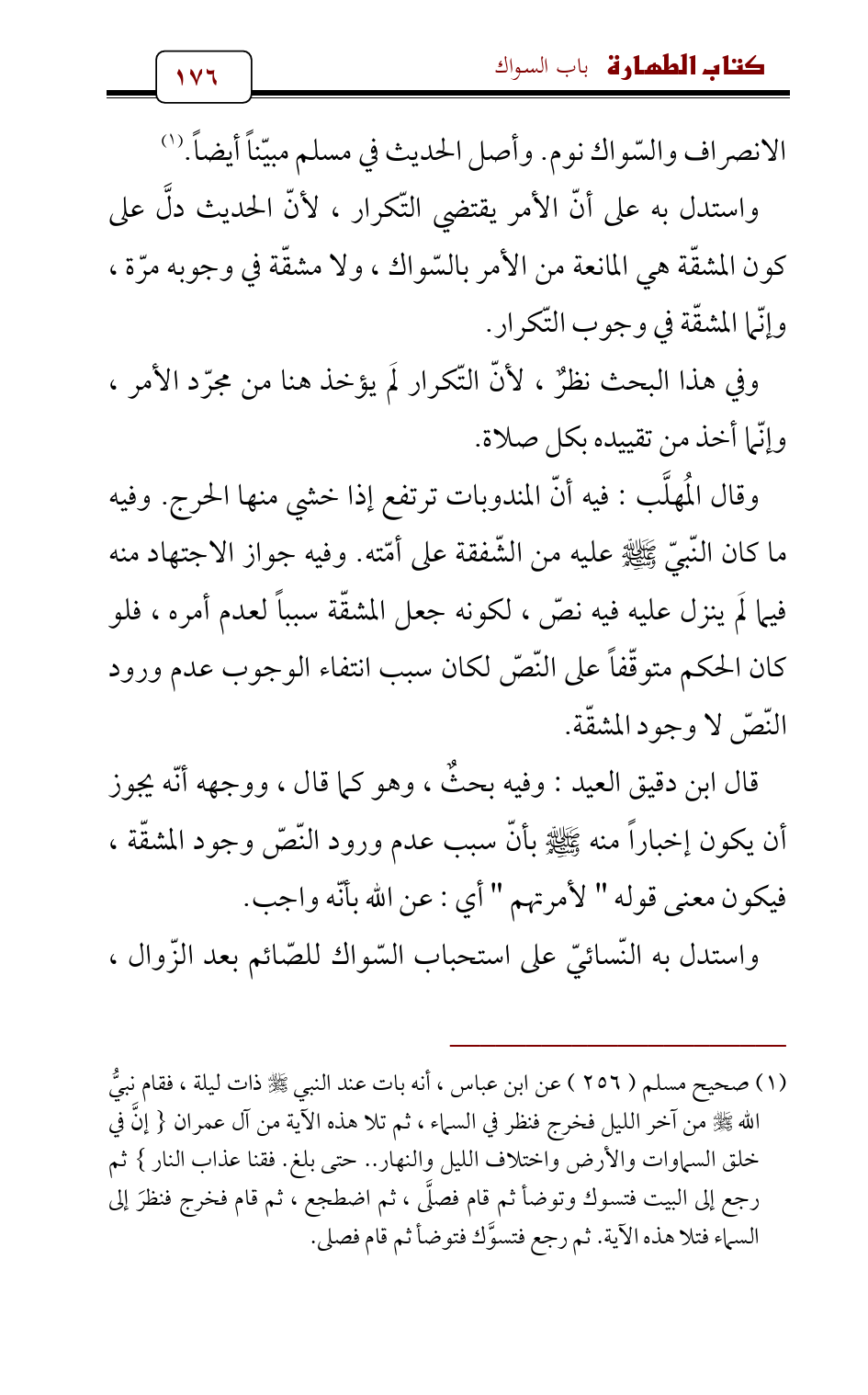 الانصراف والسّواك نوم. وأصل الحديث في مسلم مبيّناً أيضاً. (¬1)