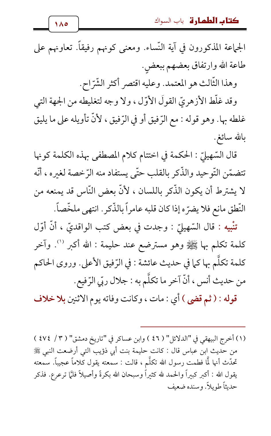 (¬1) أخرج البيهقي في " الدلائل " (46) وابن عساكر في " تاريخ دمشق " (3/ 474) من حديث ابن عباس قال: كانت حليمة بنت أبي ذؤيب التي أرضعت النبي - صلى الله عليه وسلم - تحدّث أنها لَمَّا فطمت رسول الله تكلَّم , قالت: سمعته يقول كلاماً عجيباً. سمعته يقول الله: أكبر كبيراً والحمد لله كثيراً وسبحان الله بكرةً وأصيلاً فلمَّا ترعرع. فذكر حديثاً طويلاً. وسنده ضعيف