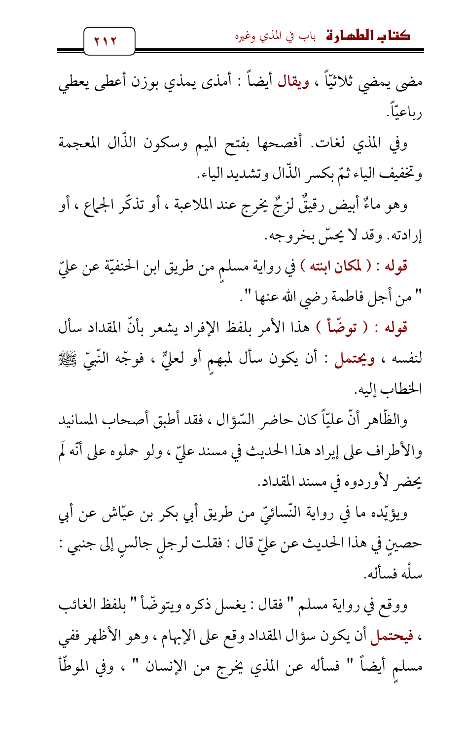 ووقع في رواية مسلم " فقال: يغسل ذكره ويتوضّأ " بلفظ الغائب , فيحتمل أن يكون سؤال المقداد وقع على الإبهام , وهو الأظهر ففي مسلمٍ أيضاً " فسأله عن المذي يخرج من الإنسان " , وفي الموطّأ