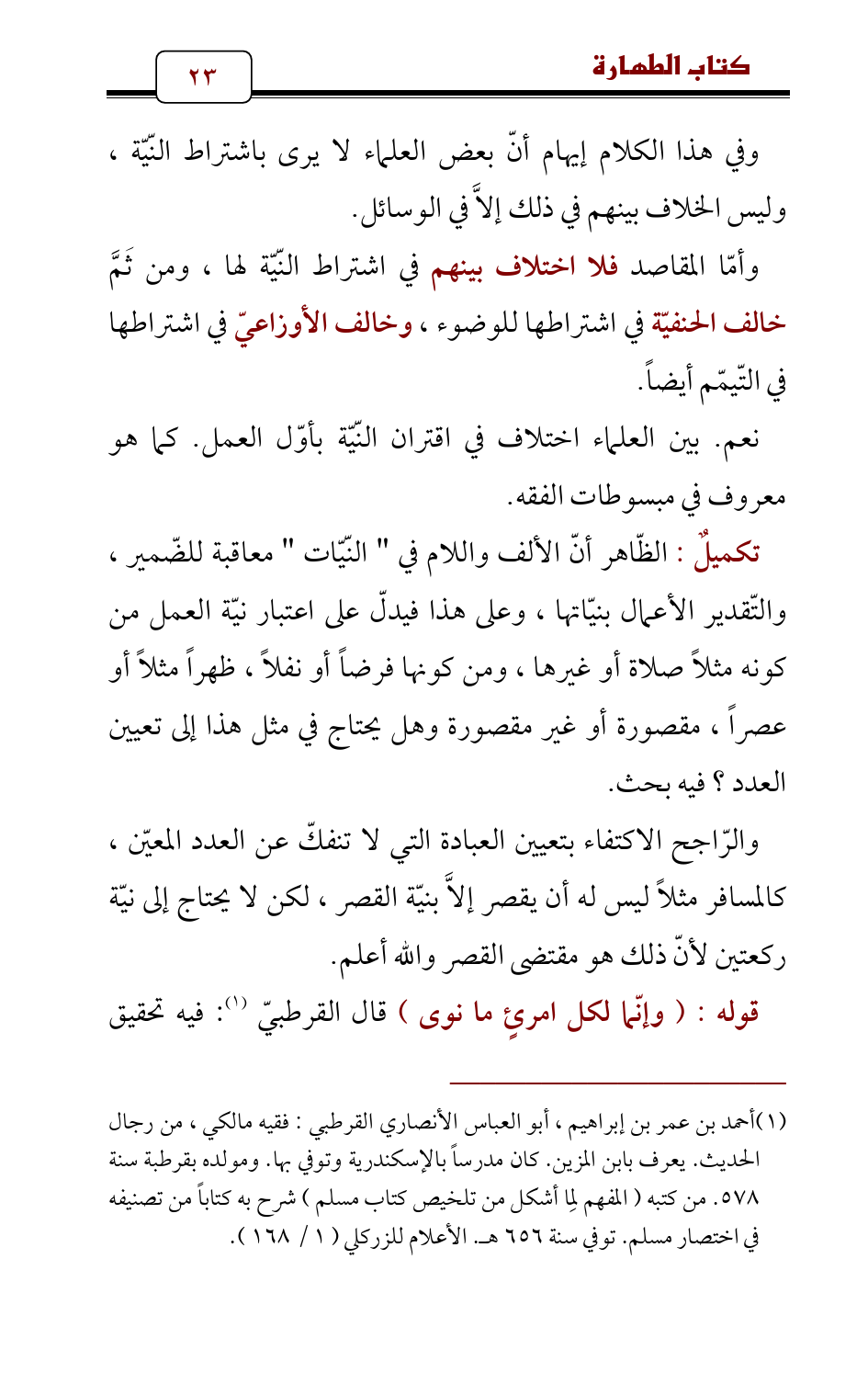 (¬1) أحمد بن عمر بن إبراهيم، أبو العباس الأنصاري القرطبي: فقيه مالكي، من رجال الحديث. يعرف بابن المزين. كان مدرساً بالإسكندرية وتوفي بها. ومولده بقرطبة سنة 578. من كتبه (المفهم لِما أشكل من تلخيص كتاب مسلم) شرح به كتاباً من تصنيفه في اختصار مسلم. توفي سنة 656 هـ. الأعلام للزركلي (1/ 168).