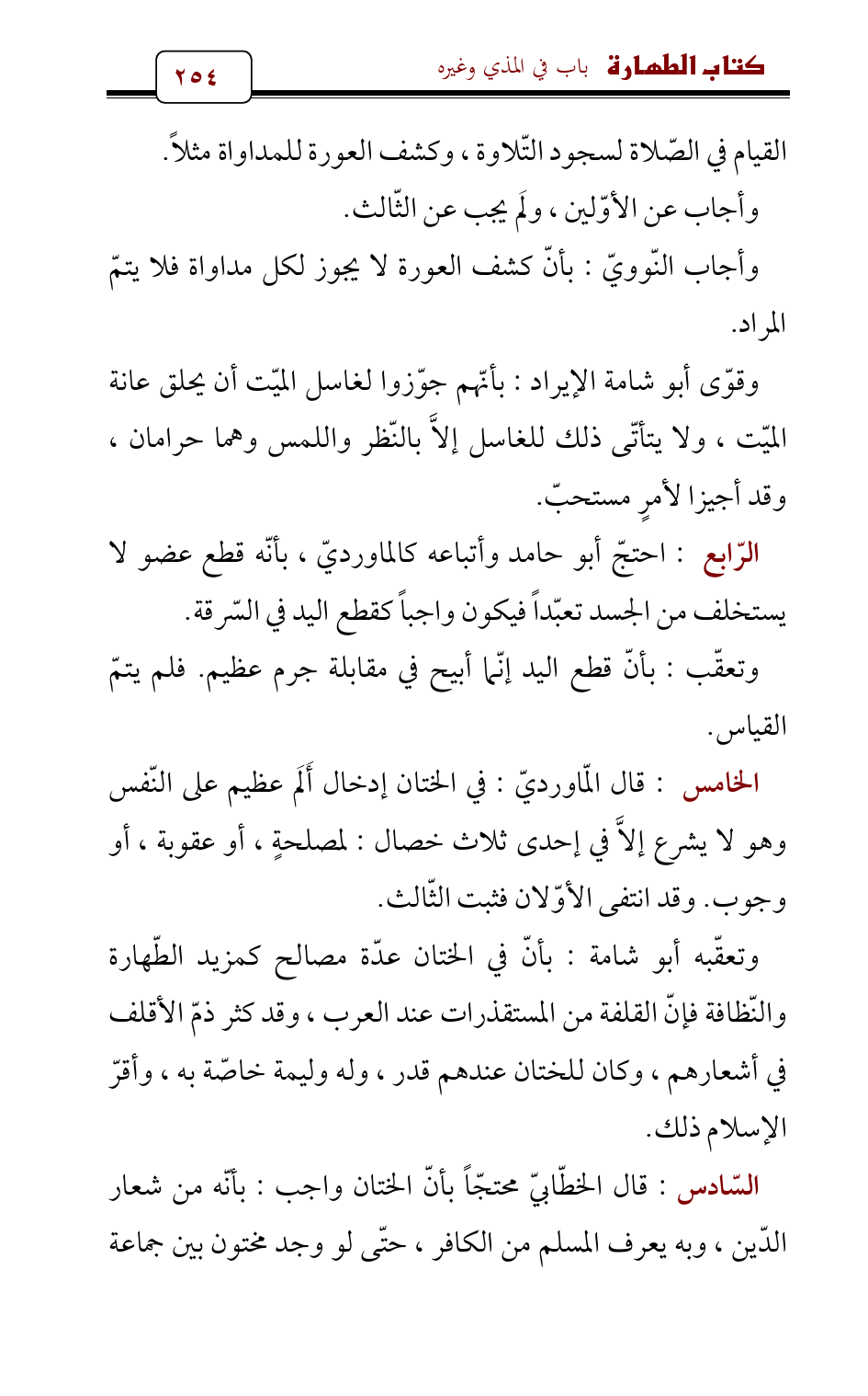 الخامس: قال الّماورديّ: في الختان إدخال أَلَم عظيم على النّفس وهو لا يشرع إلاَّ في إحدى ثلاث خصال: لمصلحةٍ، أو عقوبة، أو وجوب. وقد انتفى الأوّلان فثبت الثّالث.