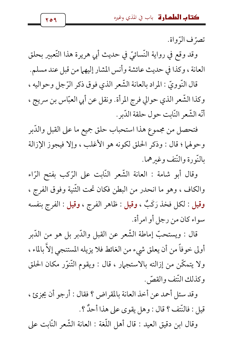 وقال ابن دقيق العيد: قال أهل اللّغة: العانة الشّعر النّابت على