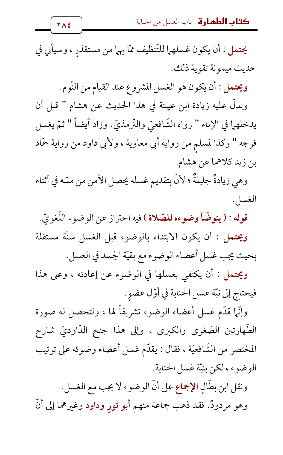 ويحتمل: أن يكون هو الغسل المشروع عند القيام من النّوم.