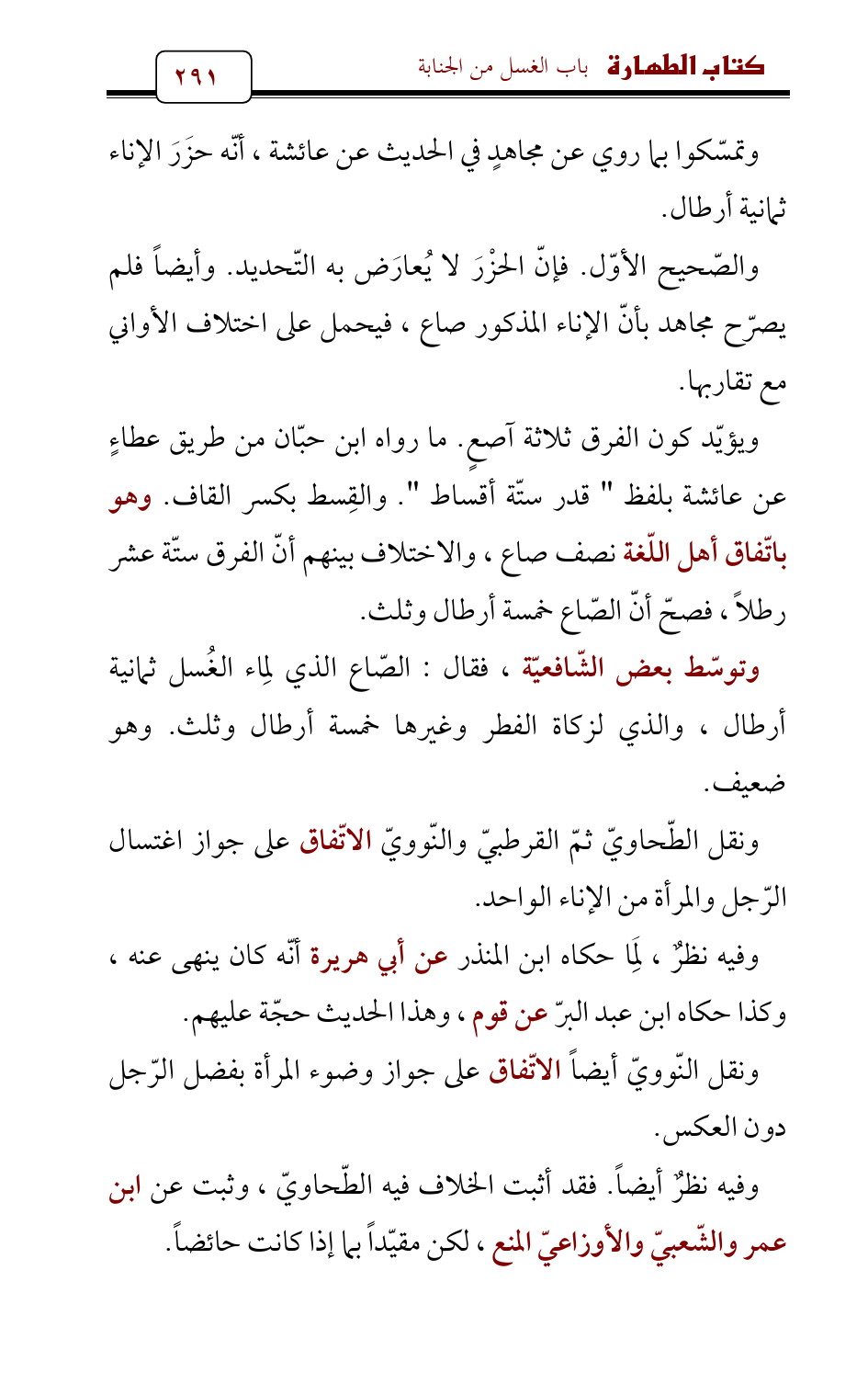 وتمسّكوا بما روي عن مجاهدٍ في الحديث عن عائشة , أنّه حزَرَ الإناء ثمانية أرطال.