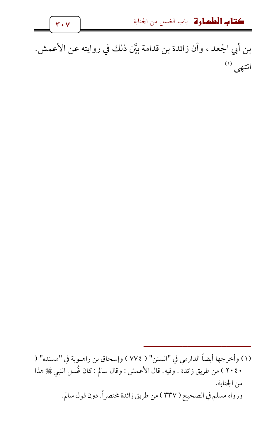 (¬1) وأخرجها أيضاً الدارمي في " السنن " (774) وإسحاق بن راهوية في " مسنده " (2040) من طريق زائدة. وفيه. قال الأعمش: وقال سالم: كان غُسل النبي - صلى الله عليه وسلم - هذا من الجنابة.