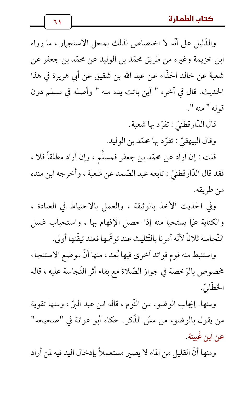 ومنها. إيجاب الوضوء من النّوم، قاله ابن عبد البرّ، ومنها تقوية من يقول بالوضوء من مسّ الذّكر. حكاه أبو عوانة في " صحيحه " عن ابن عُيينة.