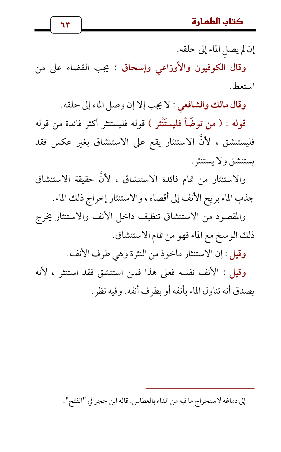 والاستنثار من تمام فائدة الاستنشاق , لأنَّ حقيقة الاستنشاق جذب الماء بريح الأنف إلى أقصاه , والاستنثار إخراج ذلك الماء.