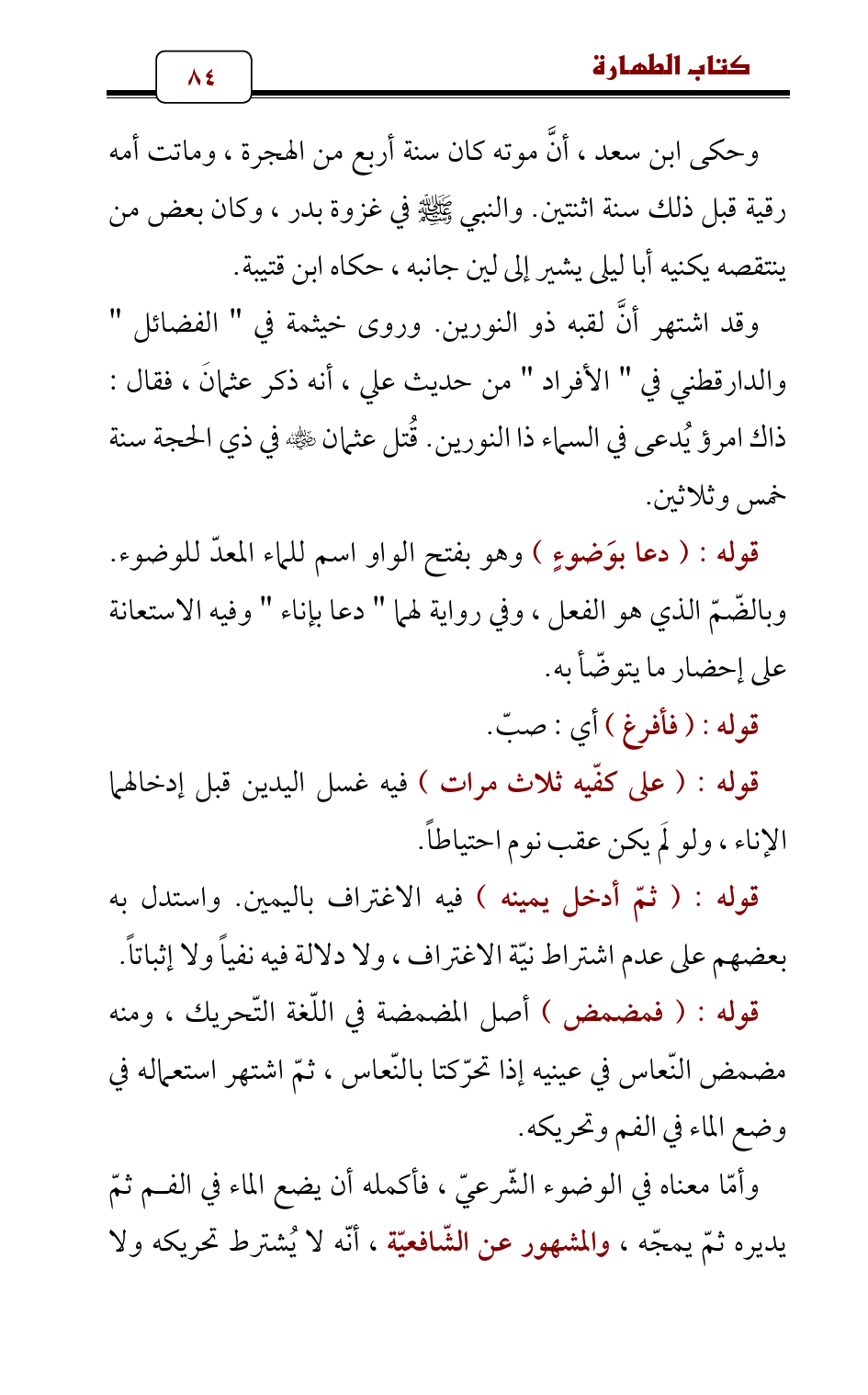 قوله: (فمضمض) أصل المضمضة في اللّغة التّحريك , ومنه مضمض النّعاس في عينيه إذا تحرّكتا بالنّعاس , ثمّ اشتهر استعماله في وضع الماء في الفم وتحريكه.