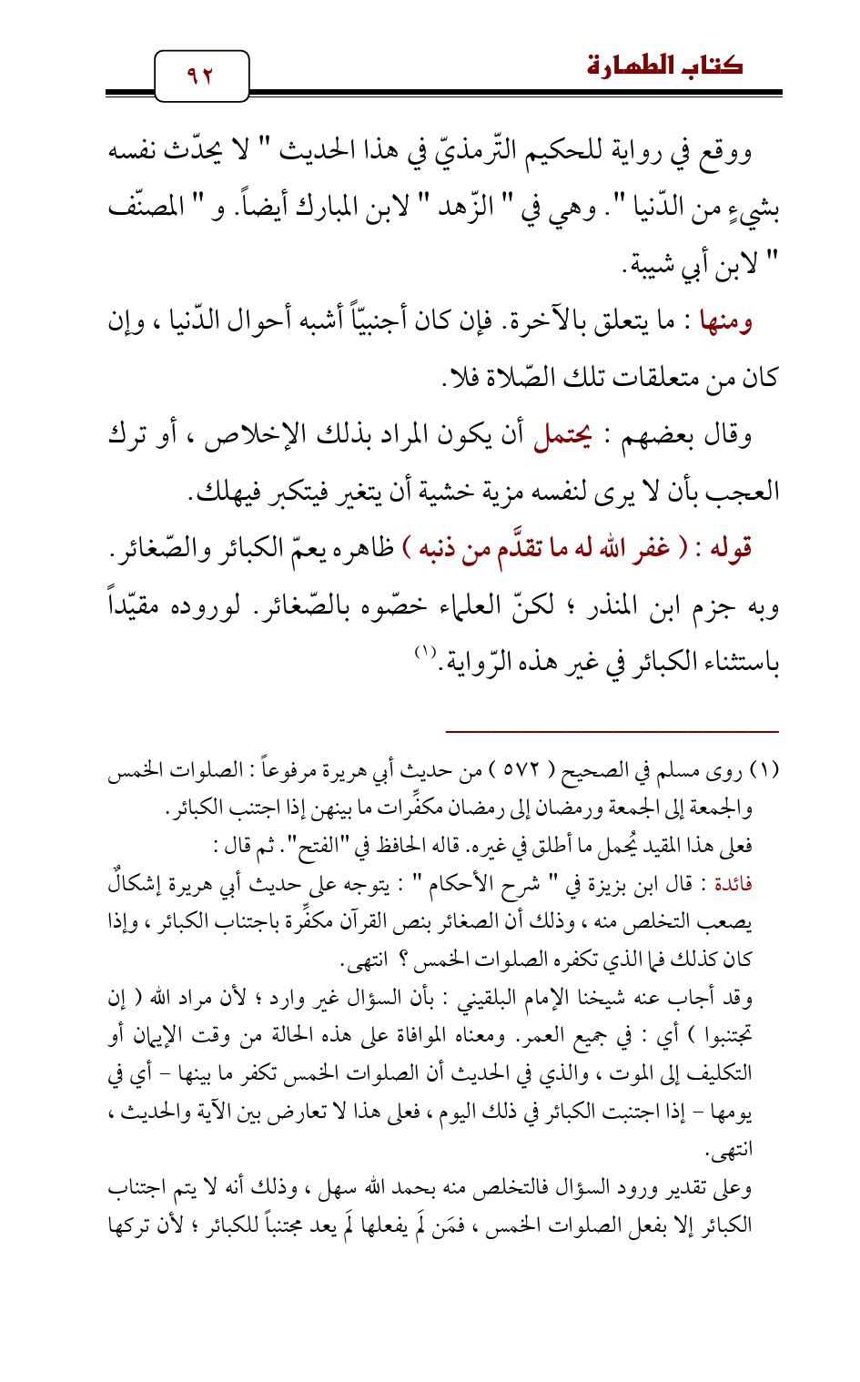 (¬1) روى مسلم في الصحيح (572) من حديث أبي هريرة مرفوعاً: الصلوات الخمس والجمعة إلى الجمعة ورمضان إلى رمضان مكفِّرات ما بينهن إذا اجتنب الكبائر.
