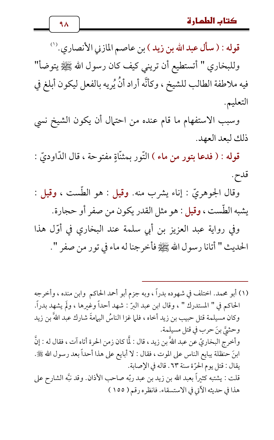 قوله: (سأل عبد الله بن زيد) بن عاصم المازني الأنصاري. (¬1)