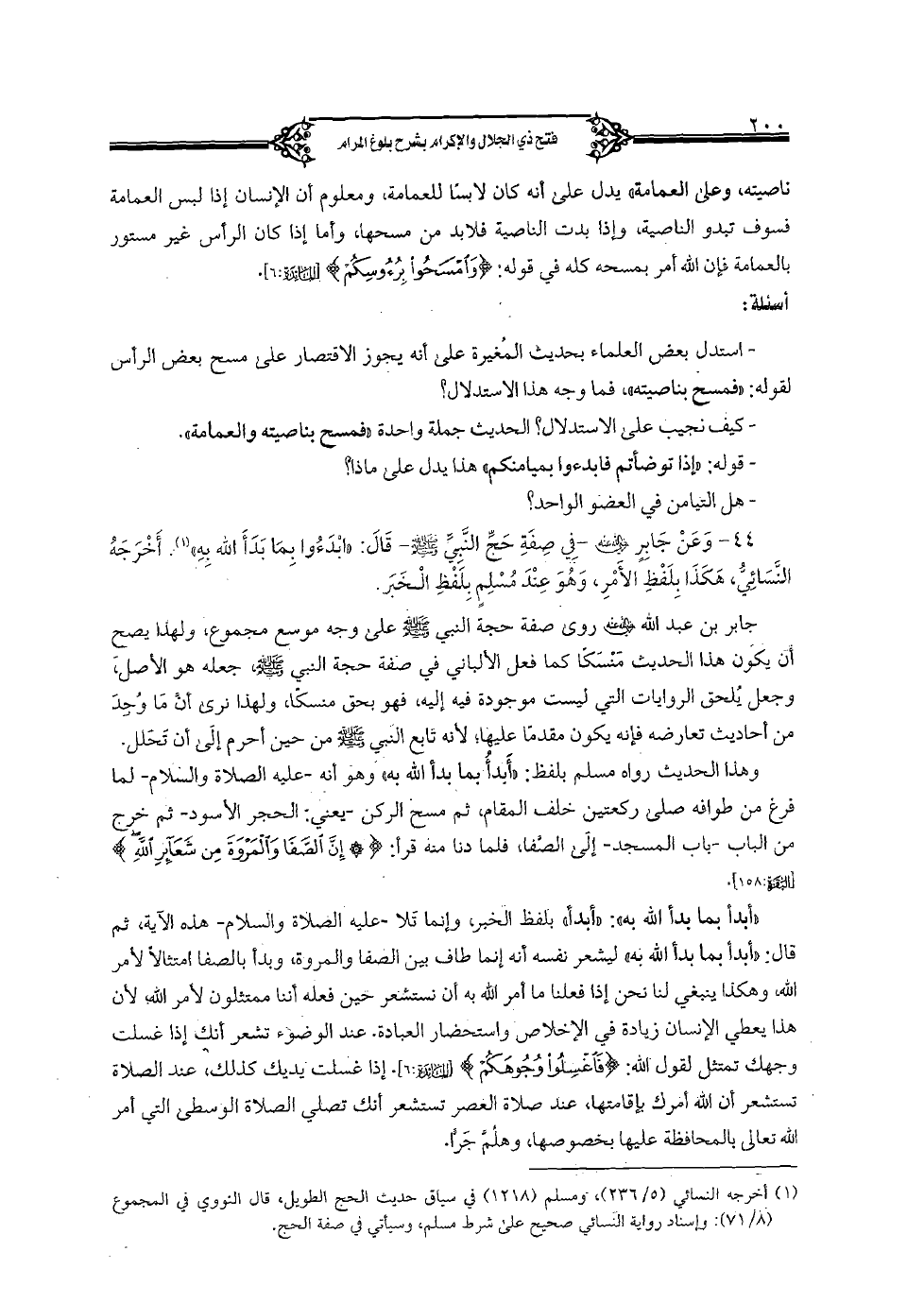 44 - وع جابر رضي الله عنه - في صفة حج النبي صلى الله عليه وسلم- قال: "ابدءوا بما بدأ الله به". أخرجه النسائي، هكذا بلفظ الأمر، وهو عند مسلم بلفظ الخبر.