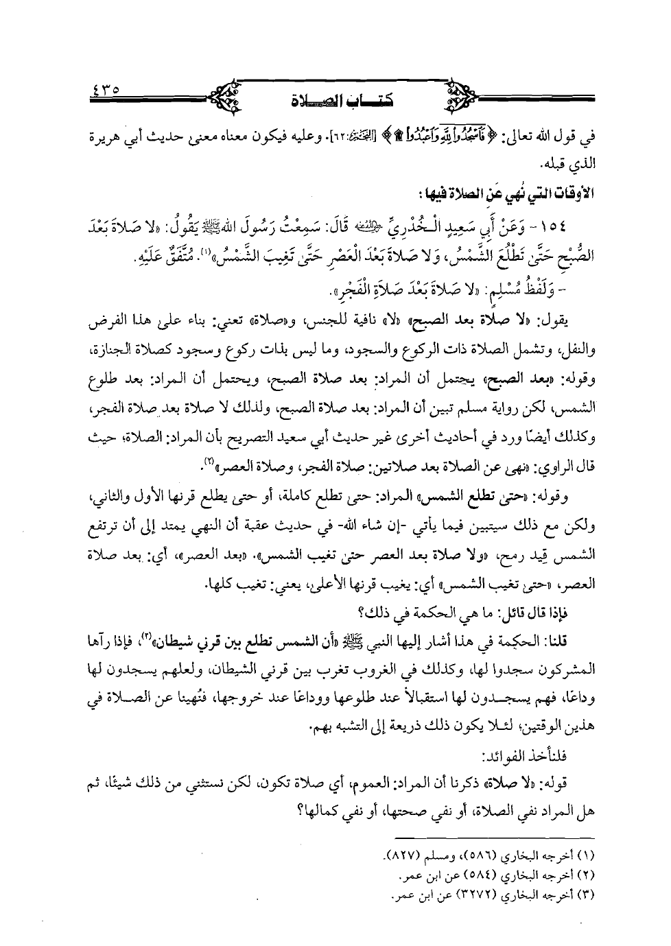 154 - وعن أبي سعيد الخدري رضي الله عنه قال: سمعت رسول الله صلى الله عليه وسلم يقول: «لا صلاة بعد الصبح حتى تطلع الشمس, ولا صلاة بعد العصر حتى تغيب الشمس». متفق عليه.