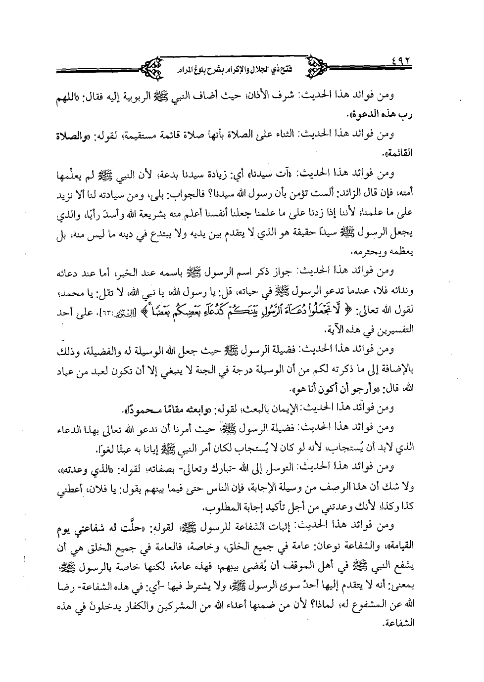 ومن فوائد هذا الحديث: شرف الأذان؛ حيث أضاف النبي صلى الله عليه وسلم الربوبية إليه فقال: «اللهم رب هذه الدعوة».
