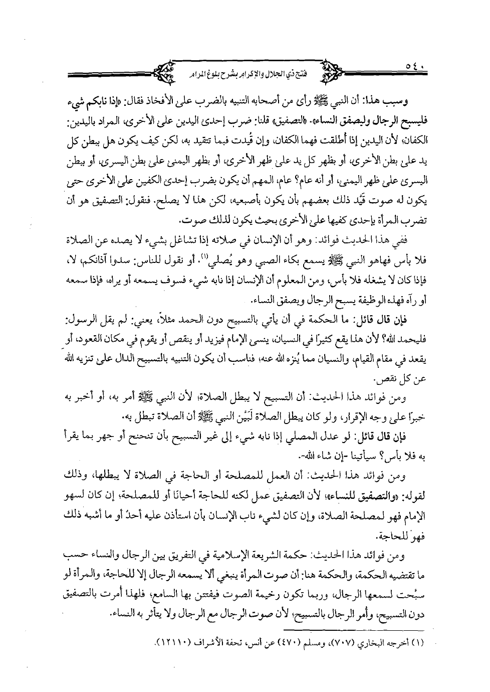 ومن فوائد هذا الحديث: أن التسبيح لا يبطل الصلاة، لأن النبي صلى الله عليه وسلم أمر به، أو أخبر به خبرا على وجه الإقرار، ولو كان يبطل الصلاة ليبين النبي صلى الله عليه وسلم أن الصلاة تبطل به.