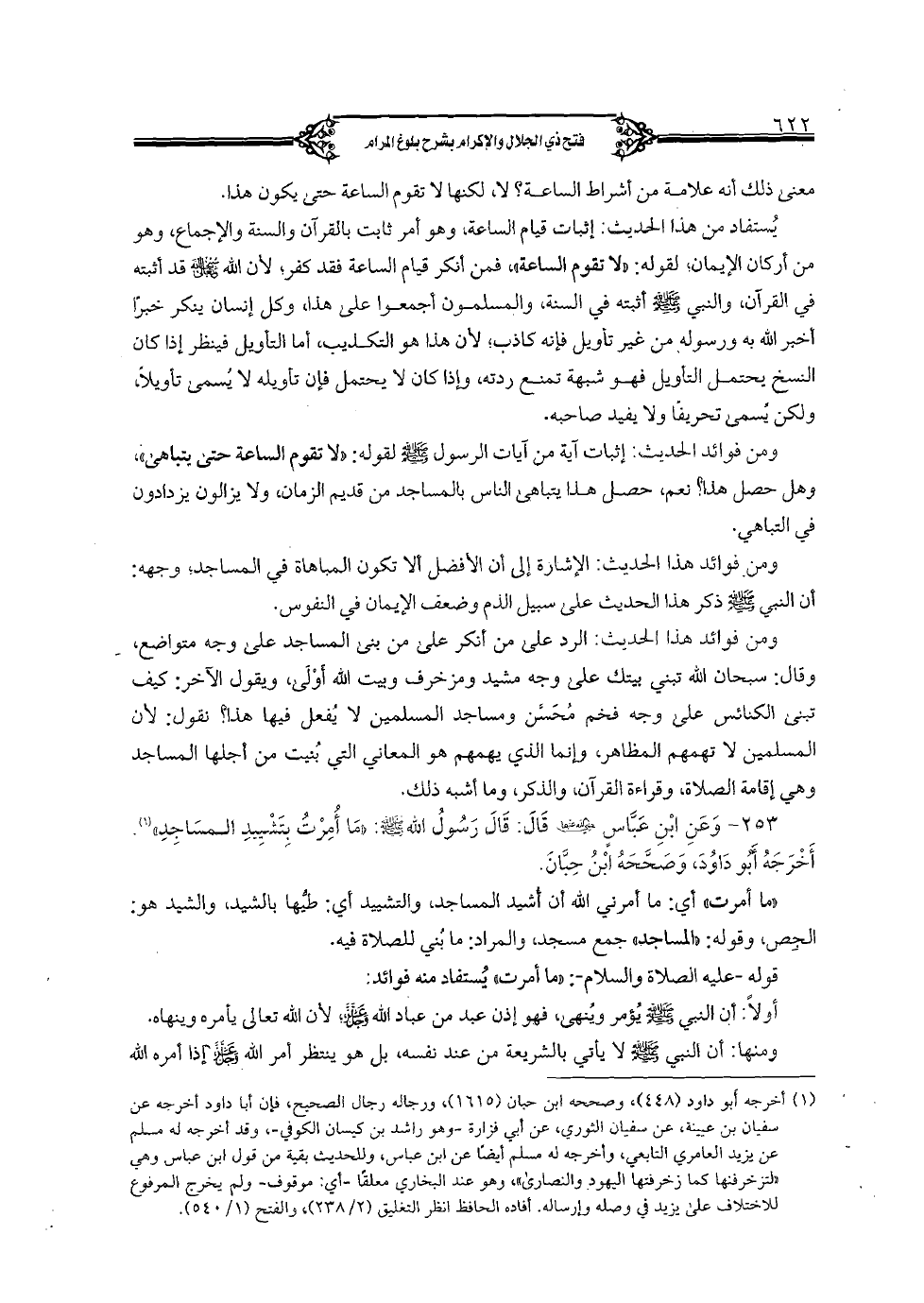 253 - وعن ابن عباس رضي الله عنهما قال: قال رسول الله صلى الله عليه وسلم: «ما أمرت بتشييد المساجد». أخرجه أبو داود, وصححه ابن حبان.