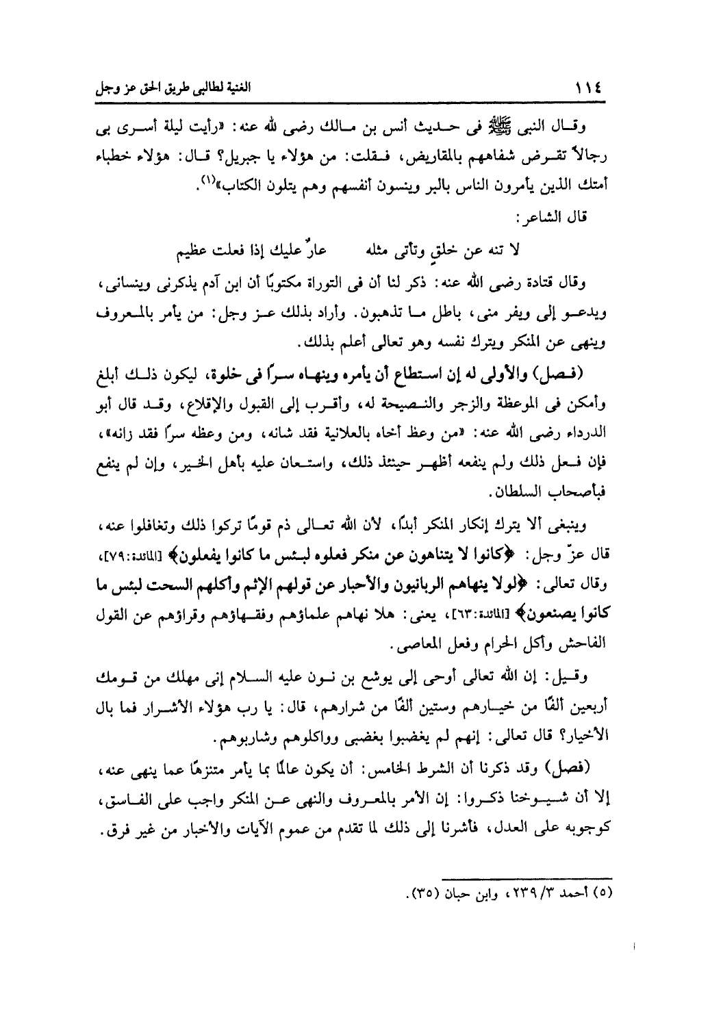 وقال النبي- صلى الله عليه وسلم- في حديث أنس بن مالك رضي الله عنه: ((رأيت ليلة أسري بي رجالًا تقرض شفاهم بالمقريض، فقلت: من هؤلاء يا جبريل؟ قال: هؤلاء خطباء أمتك الذين يأمرون الناس بالبر وينسون أنفسهم وهم يتلون الكتاب)).
