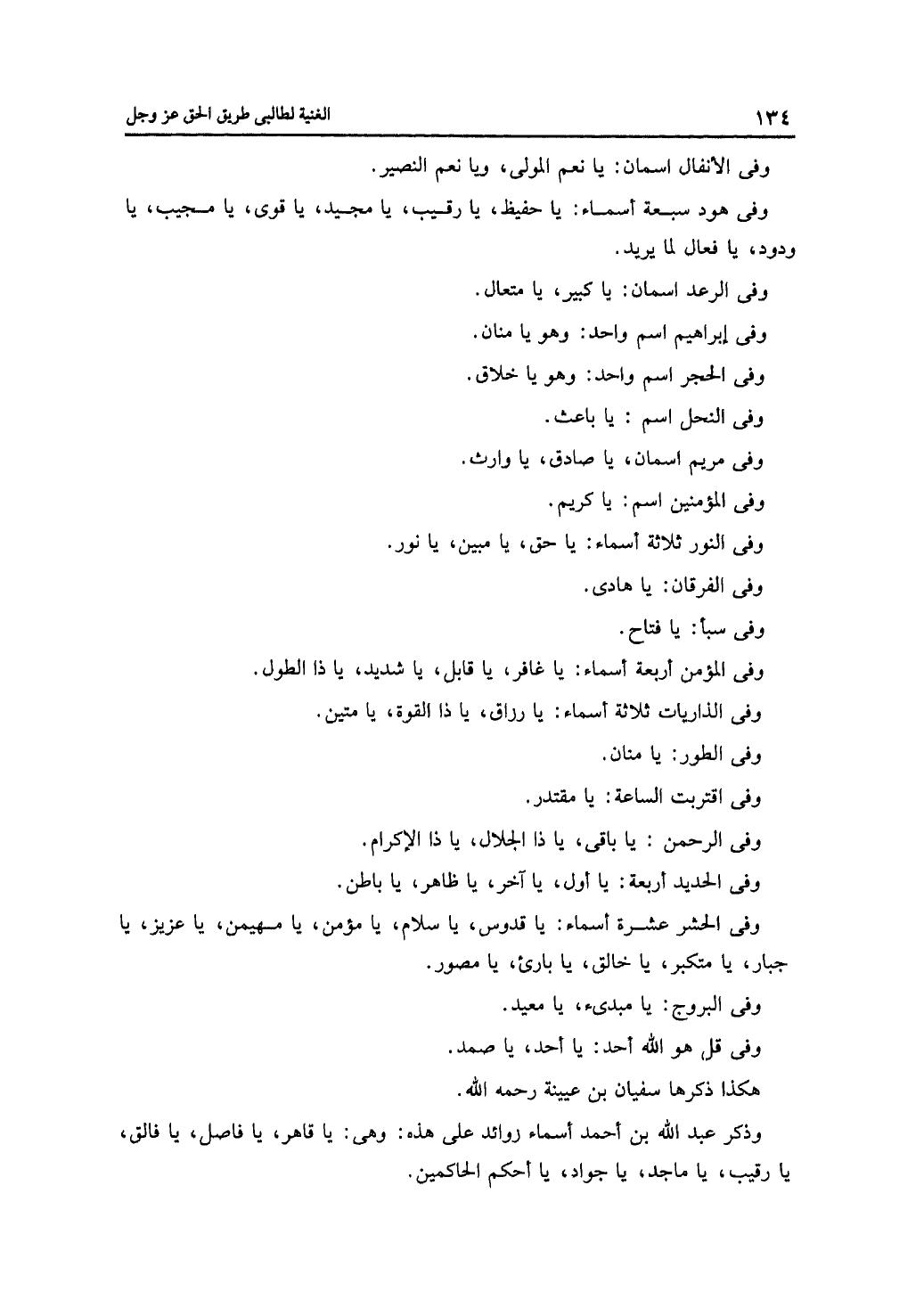 وفي النور ثلاثة أسماء: يا حق، يا مبين، يا نور.