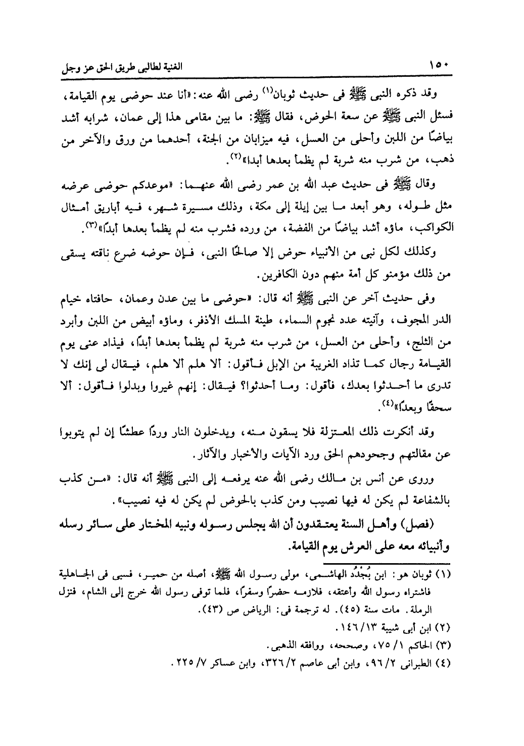 (فصل) وأهل السنة يعتقدون أن الله يجلس رسوله ونبيه المختار على سائر رسله وأنبيائه معه على العرش يوم القيامة.