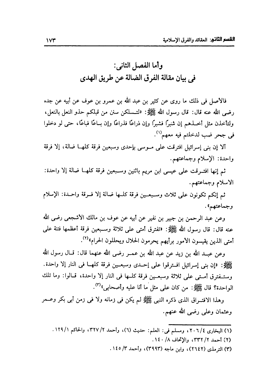 في بيان مقالة الفرق الضالة عن طريق الهدى