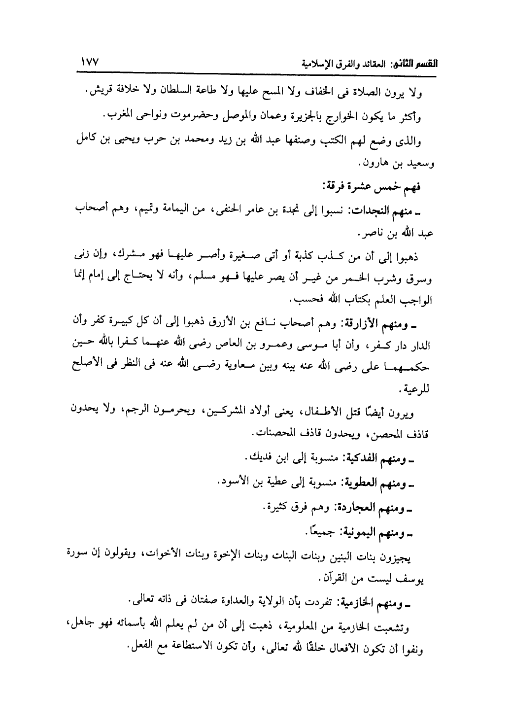 - ومنهم العجاردة: وهم فرق كثيرة.