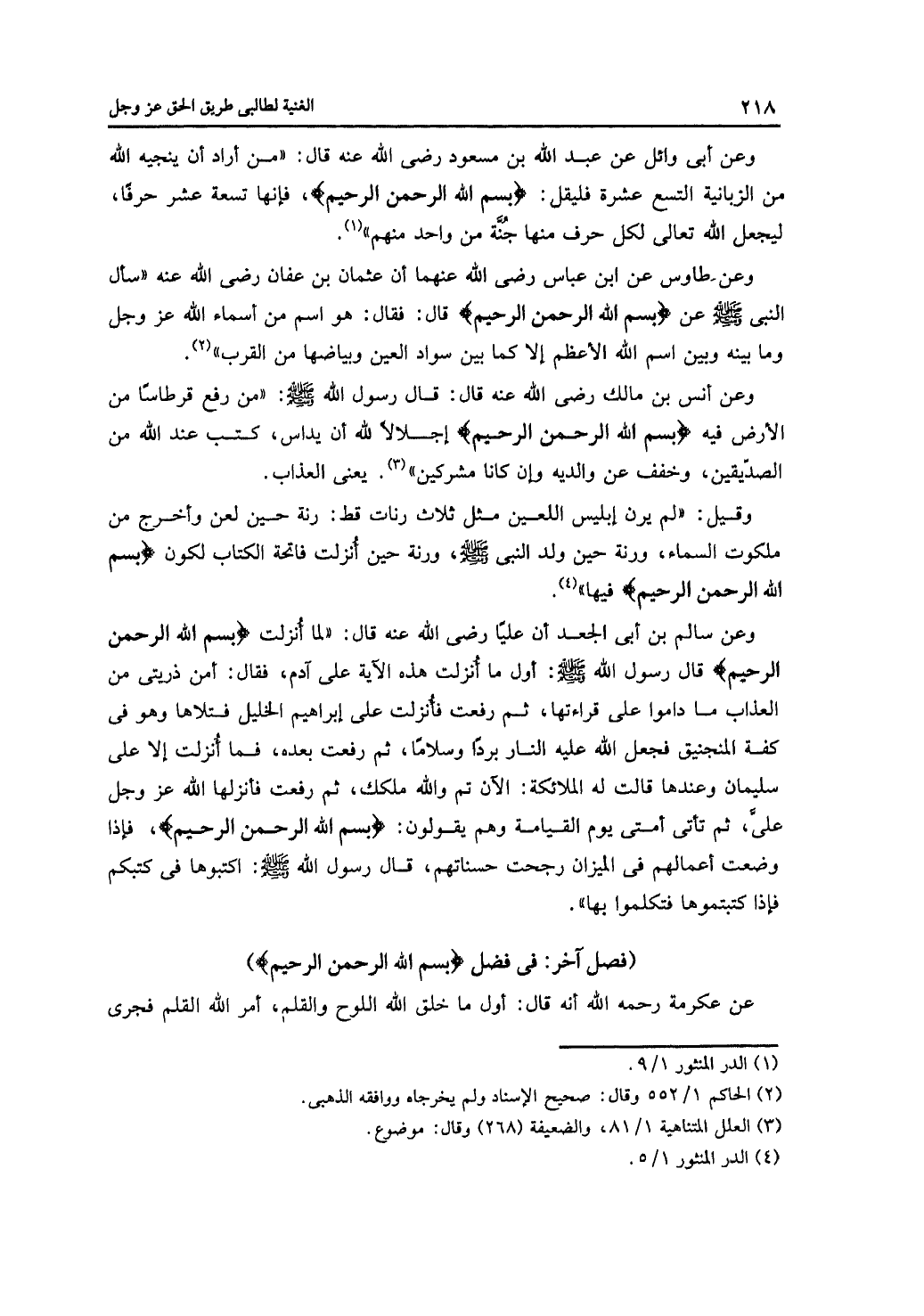(فصل آخر): في فضل {بسم الله الرحمن الرحيم}