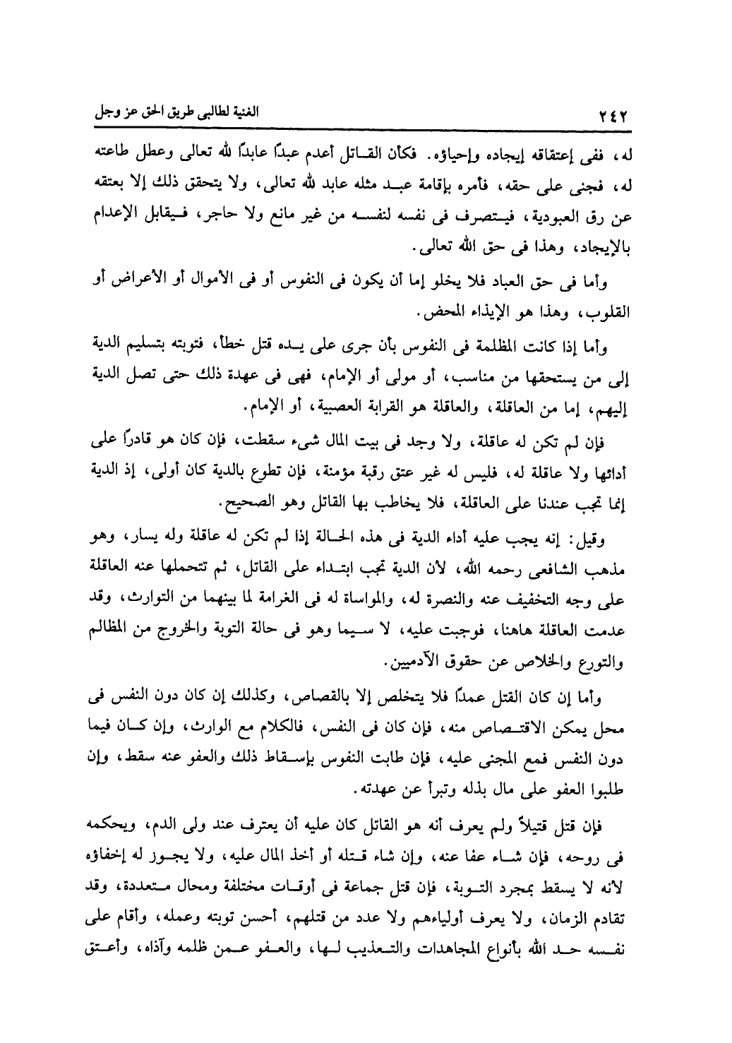 فإن قتل قتيلًا ولم يعرف أنه هو القاتل كان عليه أن يعترف عند ولي الدم، ويحكمه في روحه، فإن شاء عفا عنه، وإن شاء قتله أو أخذ المال عليه، ولا يجوز له إخفاؤه لأنه لا يسقط بمجرد التوبة، فإن قتل جماعة في أوقات مختلفة ومحال متعددة، وقد تقادم الزمان، ولا يعرف أولياءهم ولا عدد من قتلهم، أحسن توبته وعمله، وأقام على نفسه حد الله بأنواع المجاهدات والتعذيب لها، والعفو عمن ظلمه وآذاه، وأعتق
