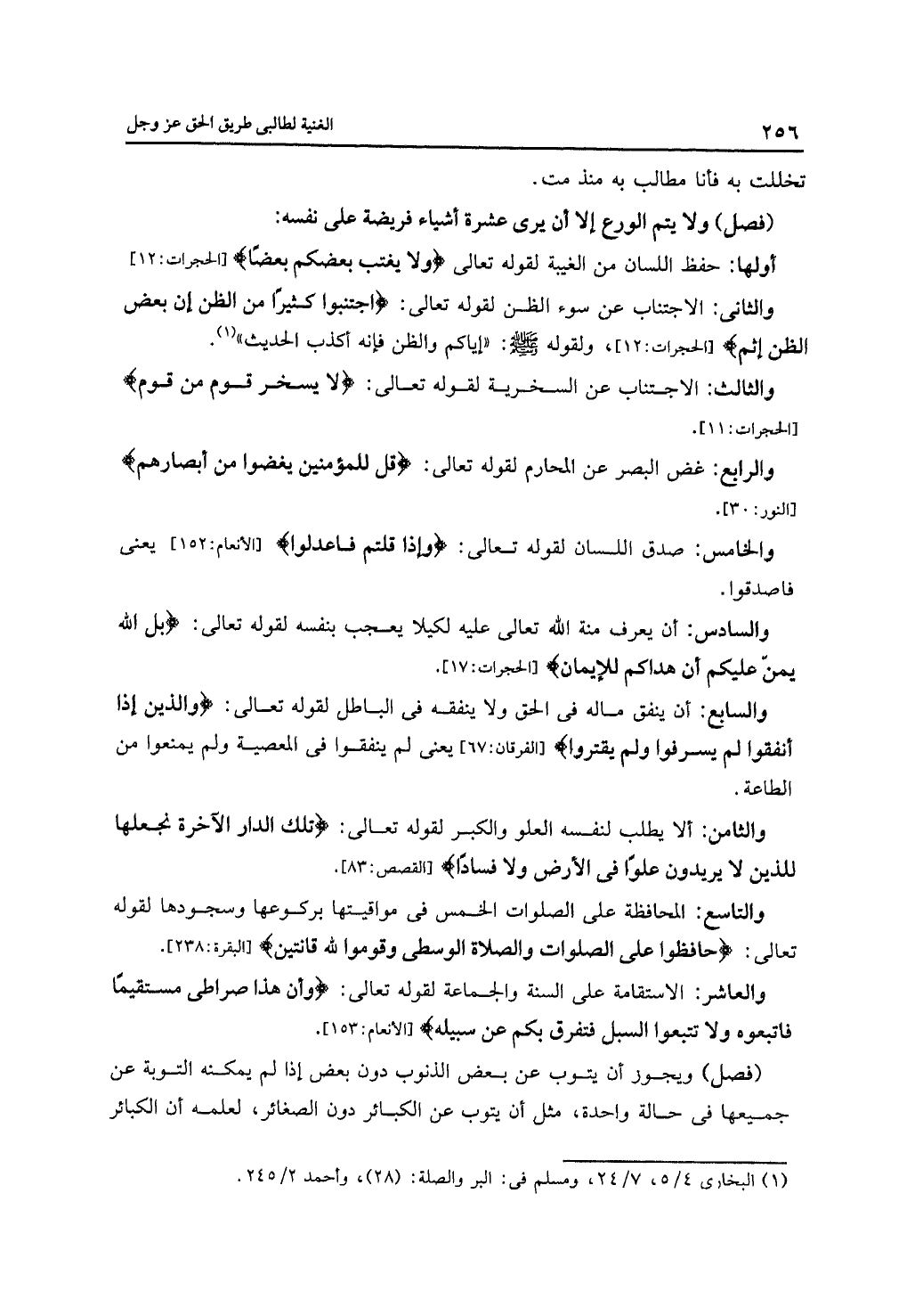 (فصل) ولا يتم الورع إلا أن يرى عشرة أشياء فريضة على نفسه: