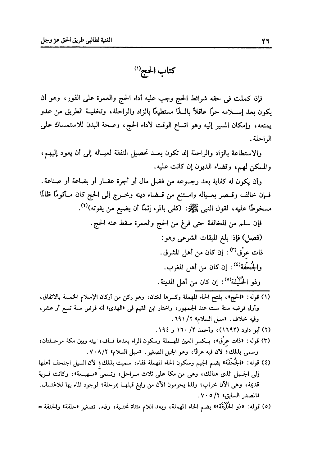 وأن يكون له كفاية بعد رجوعه من فضل ماله أو أجرة عقار أو بضاعة أو صناعة. فإن خالف وقصر بعياله وامتنع من قضاء دينه وخرج إلى الحج كان مأثومًا ظالمًا مسخوطًا عليه، لقول النبي -صلى الله عليه وسلم-: (كفى بالمرء إثمًا أن يضيع من يقوته).