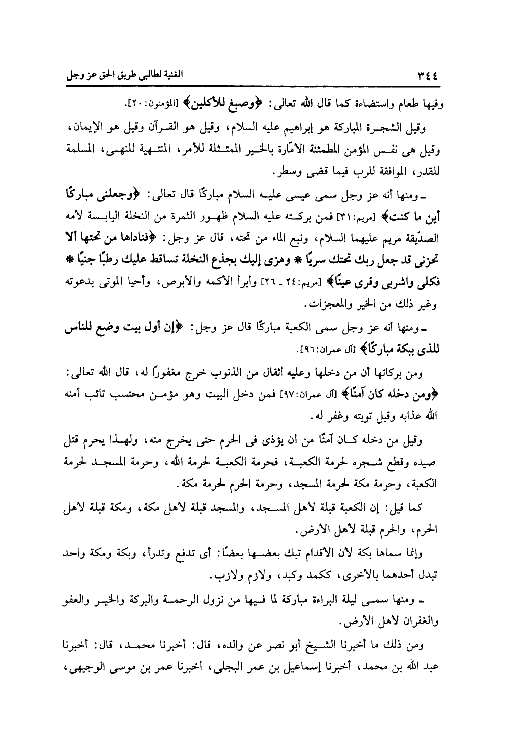 -ومنها أنه عز وجل سمي الكعبة مباركًا قال عز وجل: {إن أول بيت وضع للناس للذي ببكة مباركًا} [آل عمران: 96].