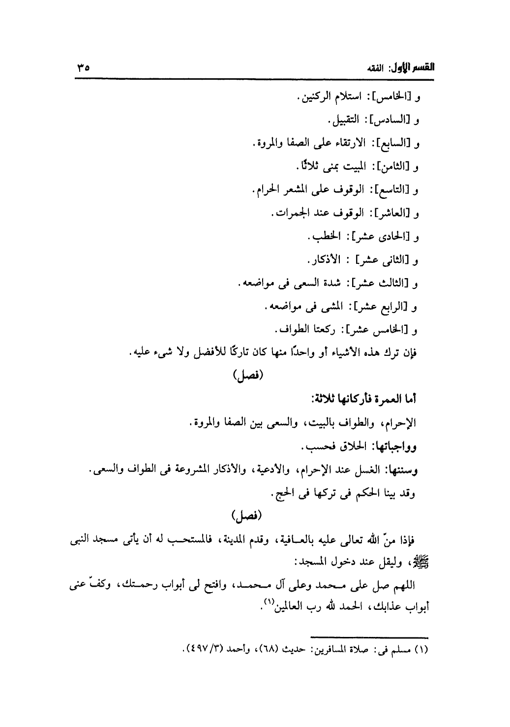 الإحرام، والطواف بالبيت، والسعي بين الصفا والمروة.