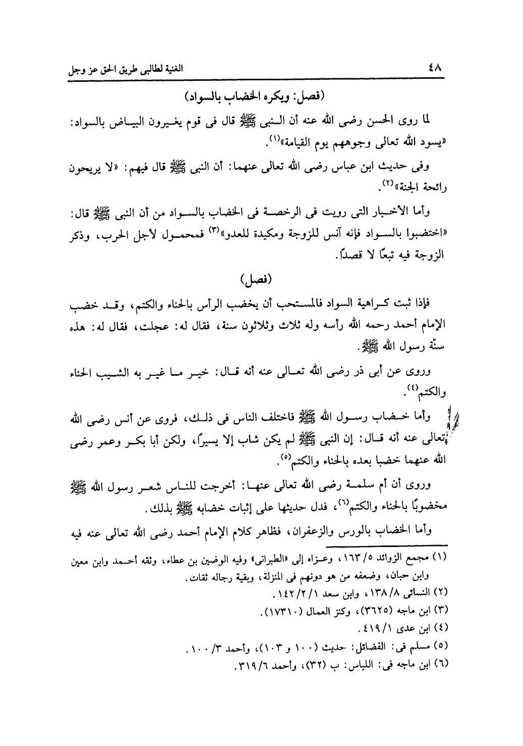 لما روى الحسن رضي الله عنه أن النبي -صلى الله عليه وسلم- قال في قوم يغيرون البياض بالسواد: «يسود الله تعالى وجوههم يوم القيامة».