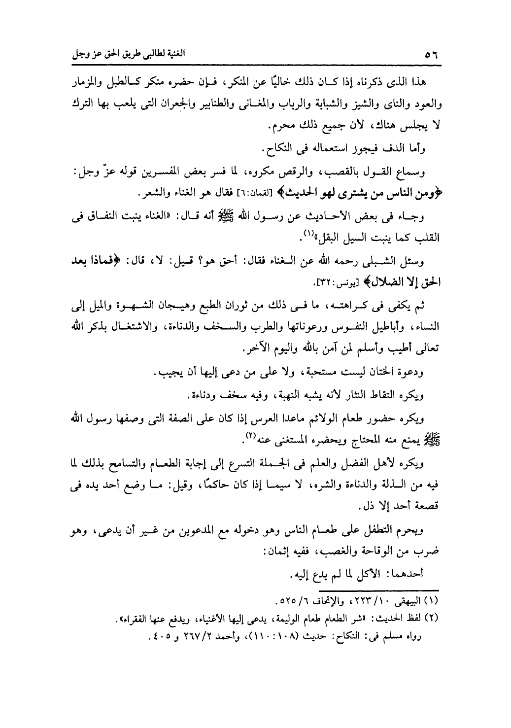 وسئل الشبلي رحمه الله عن الغناء فقال: أحق هو؟ قيل: لا، قال: {فماذا بعد الحق إلا الضلال} [يونس: 32].