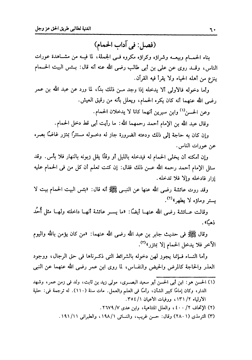 وعن الحسن وابن سيرين أنهما كان لا يدخلان الحمام.