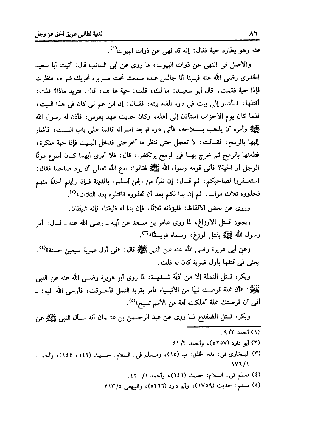 عنه وهو يطارد حية فقال: إنه قد نهى عن ذوات البيوت.