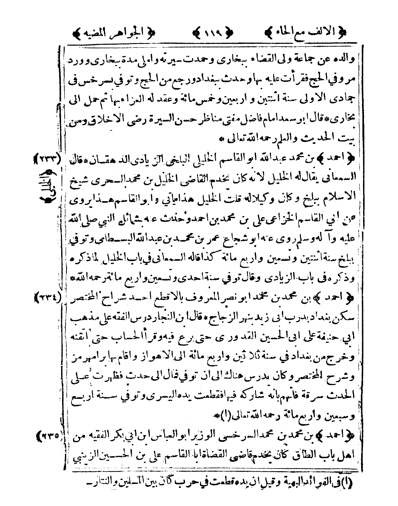 235 - أَحْمد بن مُحَمَّد بن مُحَمَّد السَّرخسِيّ الْوَزير أَبُو الْعَبَّاس ابْن أبي بكر الْفَقِيه من أهل بَاب الطاق كَانَ يخْدم قَاضِي الْقُضَاة أَبَا الْقَاسِم عَليّ بن الْحُسَيْن الزَّيْنَبِي