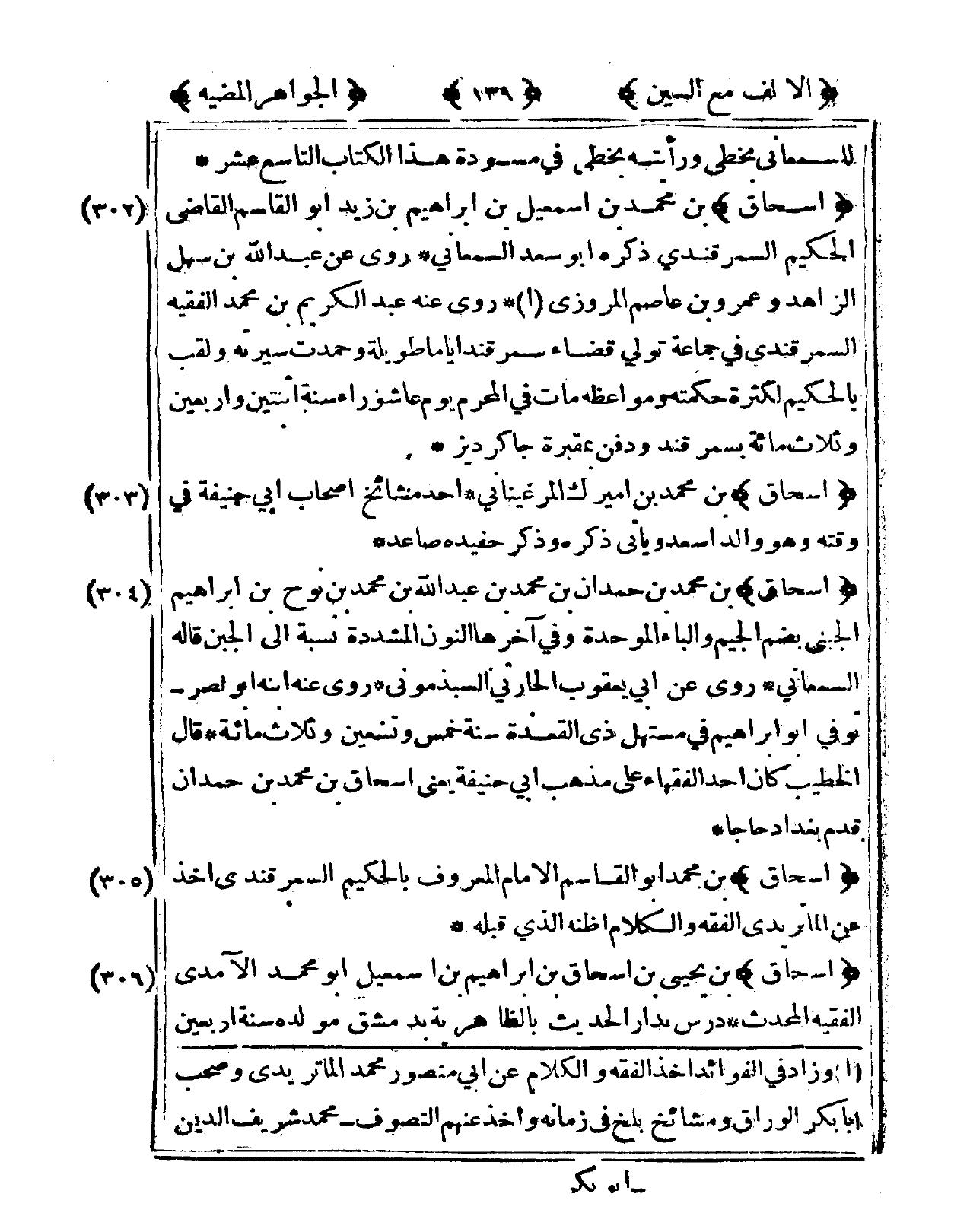 305 - إِسْحَاق بن مُحَمَّد أَبُو الْقَاسِم الإِمَام الْمَعْرُوف بالحكيم السَّمرقَنْدِي أَخذ عَن الماتريدي الْفِقْه وَالْكَلَام أَظُنهُ الَّذِي قبله