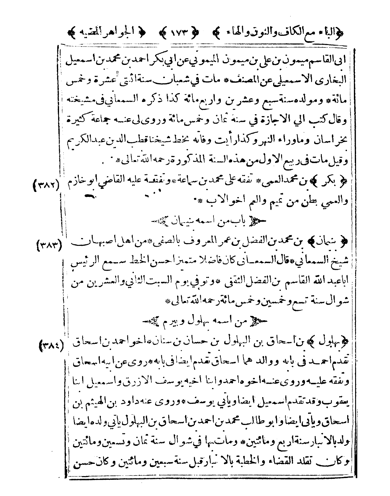 382 - بكر بن مُحَمَّد الْعَمى تفقه على مُحَمَّد بن سَمَّاعَة وتفقه عَلَيْهِ القَاضِي أَبُو خازم والعمي بطن من تَمِيم وَالْعم أَخُو الْأَب