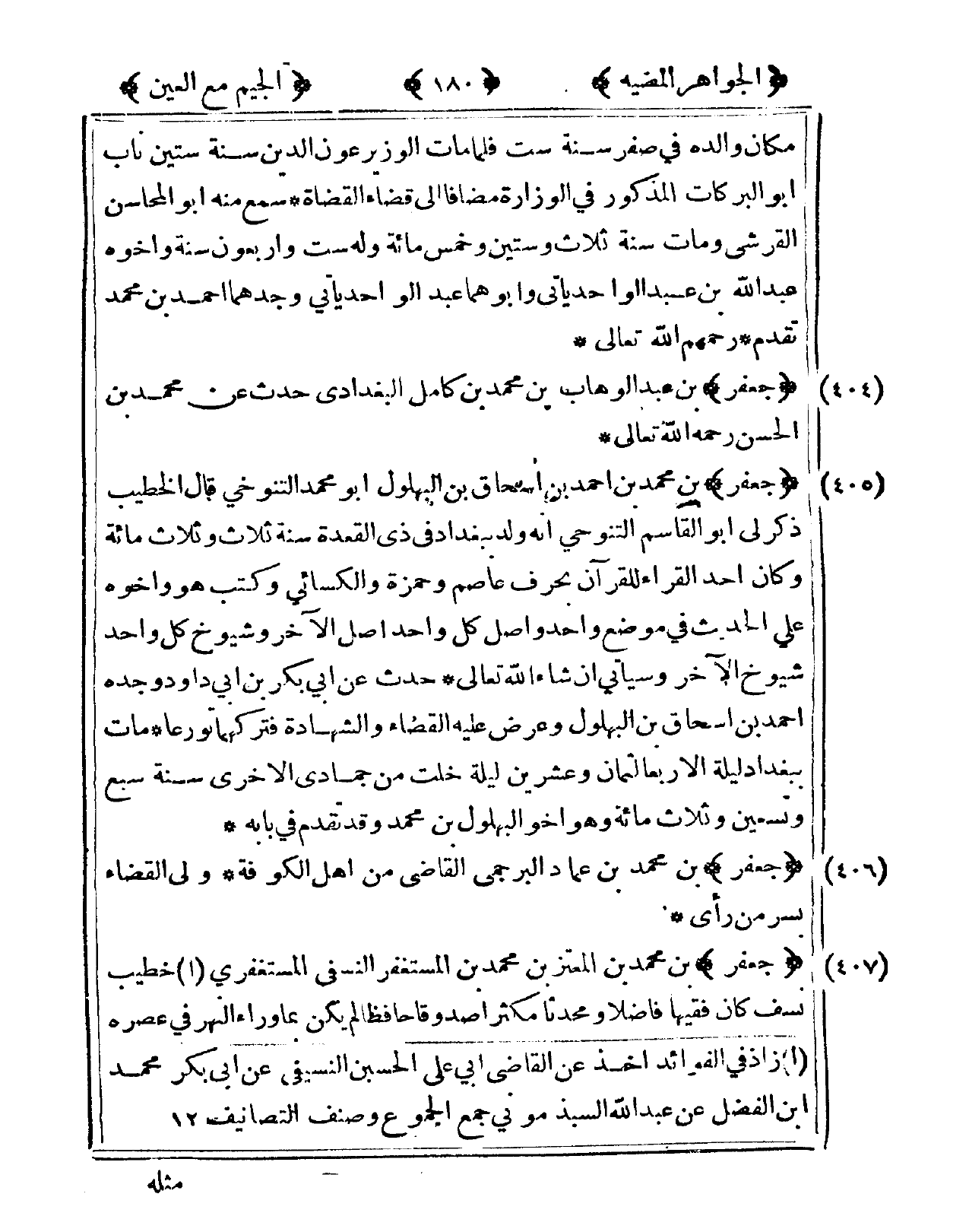 404 - جَعْفَر بن عبد الْوَهَّاب بن مُحَمَّد بن كَامِل الْبَغْدَادِيّ حدث عَن مُحَمَّد بن الْحسن رَحمَه الله تَعَالَى