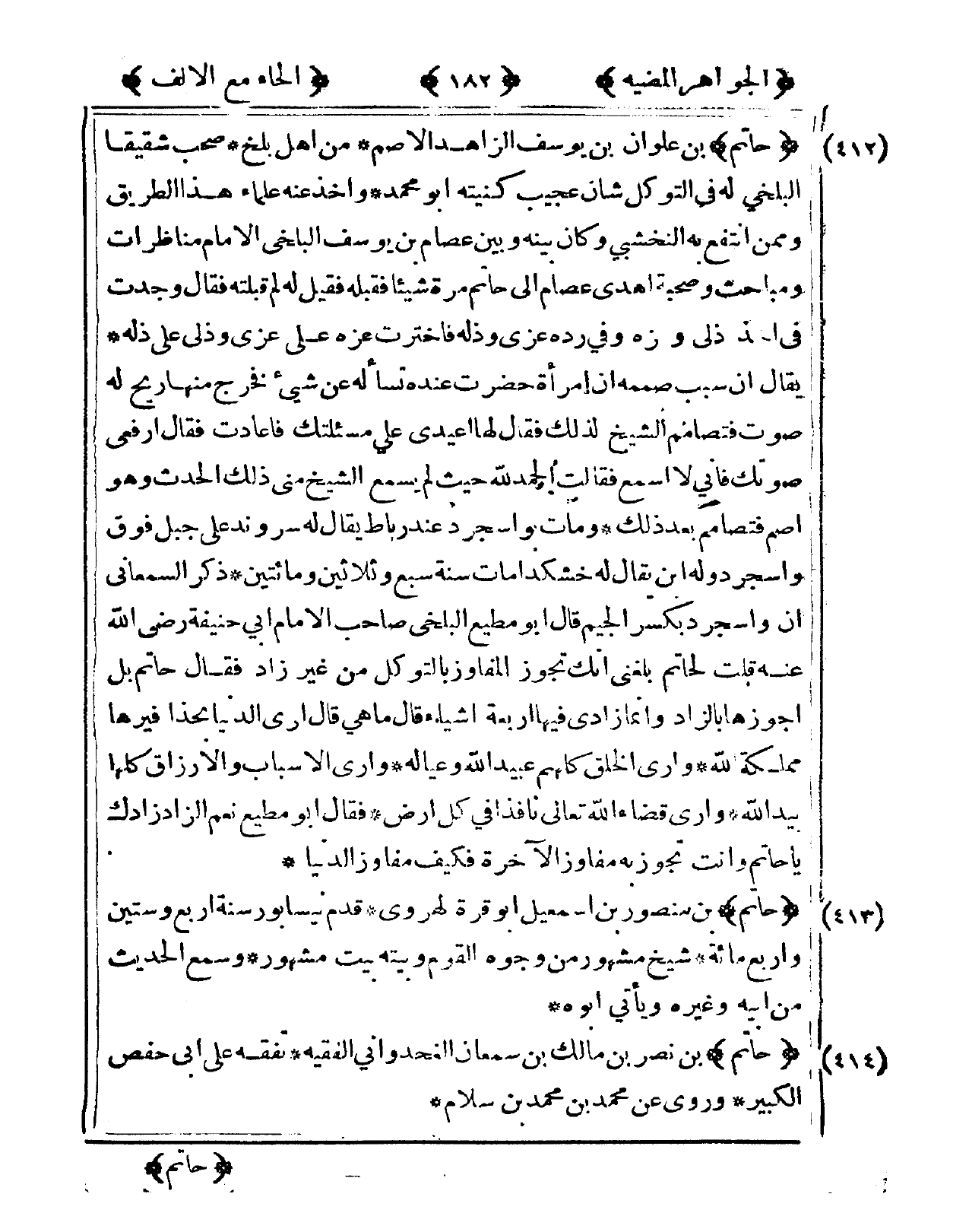 414 - حَاتِم بن نصر بن مَالك بن سمْعَان الغجدواني الْفَقِيه تفقه على أَبى حَفْص الْكَبِير وروى عَن مُحَمَّد بن مُحَمَّد بن سَلام