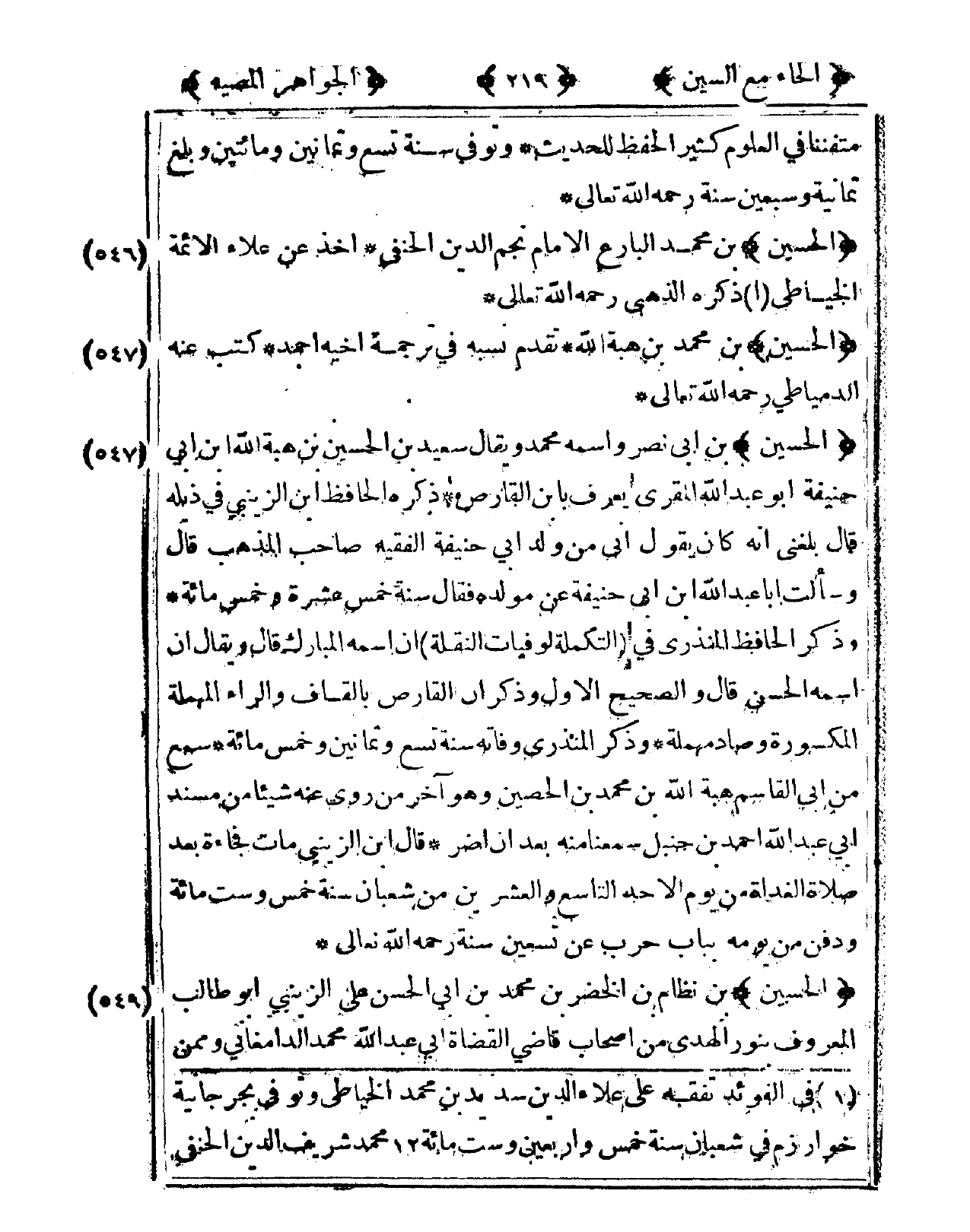 546 - الْحُسَيْن بن مُحَمَّد البارع الإِمَام نجم الدّين الْحَنَفِيّ أَخذ عَن عَلَاء الْأَئِمَّة الخياطي ذكره الذَّهَبِيّ رَحمَه الله تَعَالَى