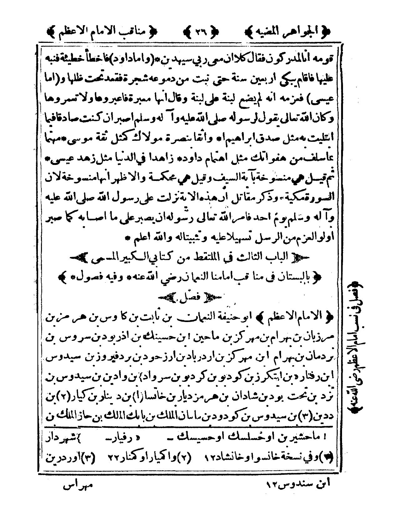 الْبَاب الثَّالِث فى الْمُلْتَقط من كتابي الْكَبِير الْمُسَمّى بالبستان فى مَنَاقِب إمامنا النُّعْمَان رضى الله عَنهُ وَفِيه فُصُول