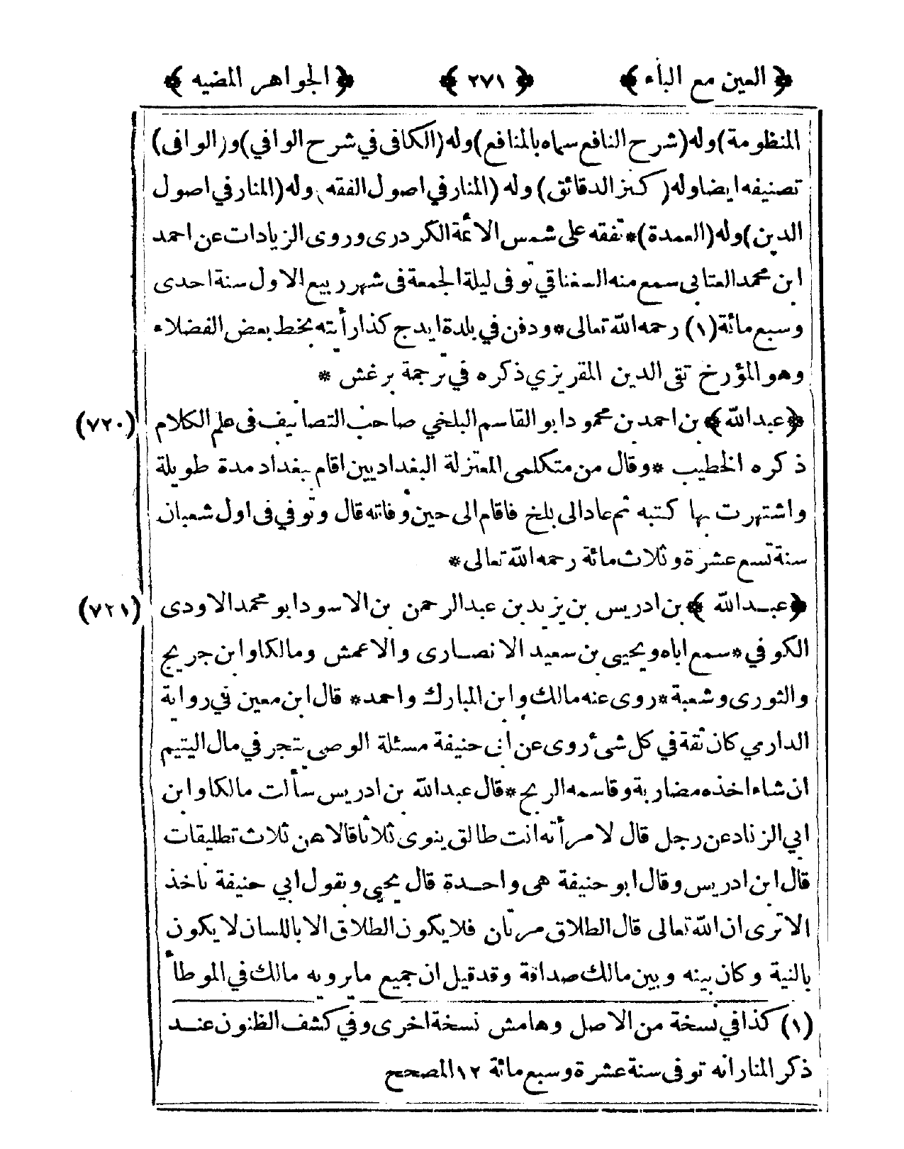 كتاب الجواهر المضية في طبقات الحنفية (اسم الجزء: 1)